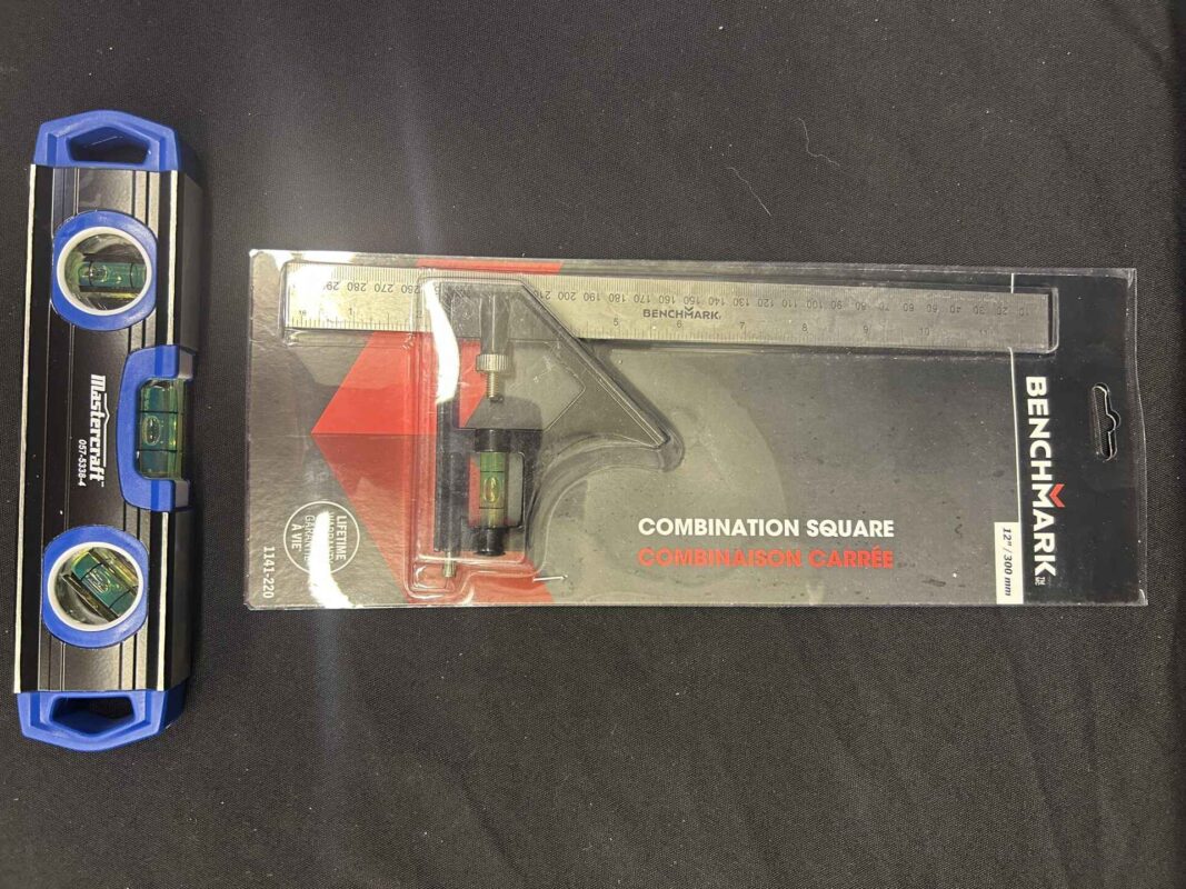 Mastercraft 12″ torpedo level, brand new. Benchmark 12″ combination square, brand new.