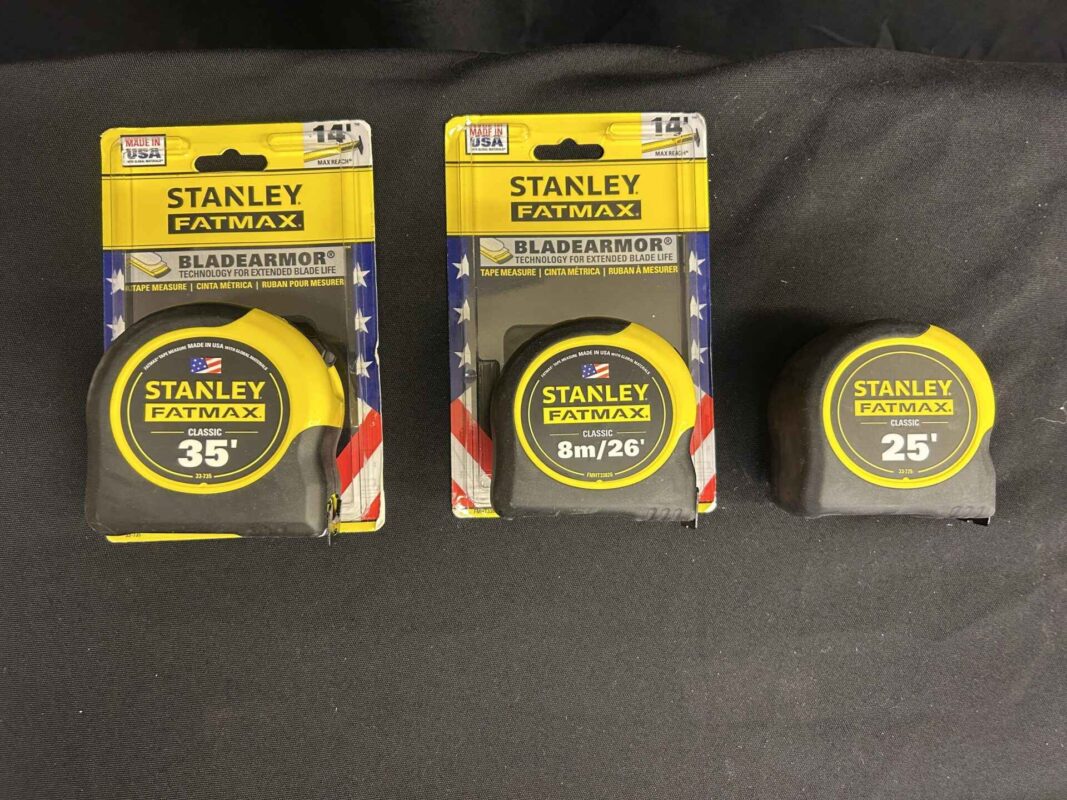 3 Stanley Measuring Tapes. 35′, 25′ and 26′. Each with 14′ reach. Brand new!