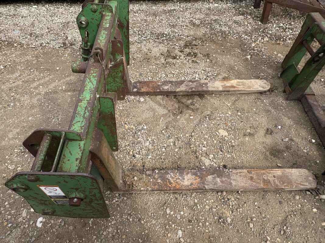Pallet fork with John Deere hook-up . Used but has lots of life left !
