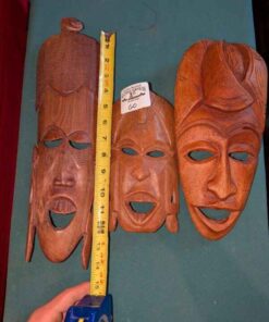 Trio of wood carved wall masks