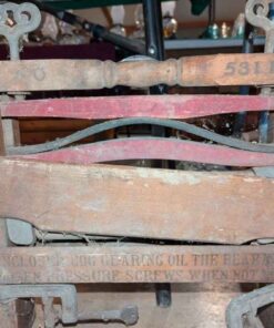 This sale will feature an exquisite array of antiques not the least of which will include an antique ice box, several student desks, oil lamps, sad irons, antique tables, Baker's rack, wooden advertising crates, block and hand planes, Display cabinets, milk bottles, decorative screens, sewing machines, accents signs, ash trays, picture frames, crokinole board, skateboard, antique weigh scales, wash board, dressers, cast grates, pestles, insulators, wall masks, carvings, brass wares, wood barrels, crocks, vintage light fixtures, butter press, blow torches, lanterns, large ox yoke, corbeils, antique wrenches, rolling pin, glass carboys, walking sticks, advertising signs, bottles, wall traps and more!