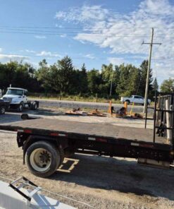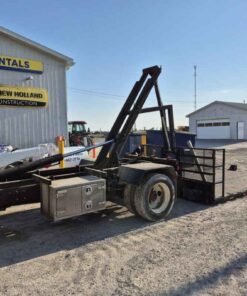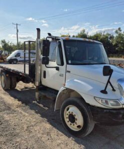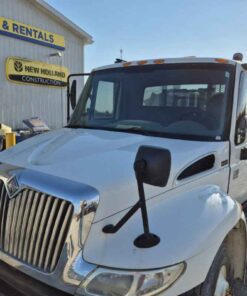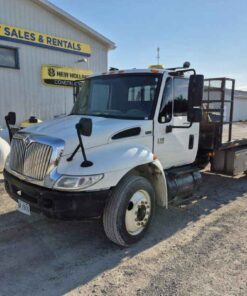 2004 International 4300 with Kargo King hooklift system, Pre-Emission International DT466 engine, 16 foot flatbed deck, Chain/Storage Box, Front fender mirrors, International 6 Plus standard transmission, Good strong running truck & Hooklift system, 360437 kilometres, Bob Mark Equipment Sales & Rentals, 2197 Little Britain Rd. Lindsay K9V 4S5, Darryl 705-879-0138