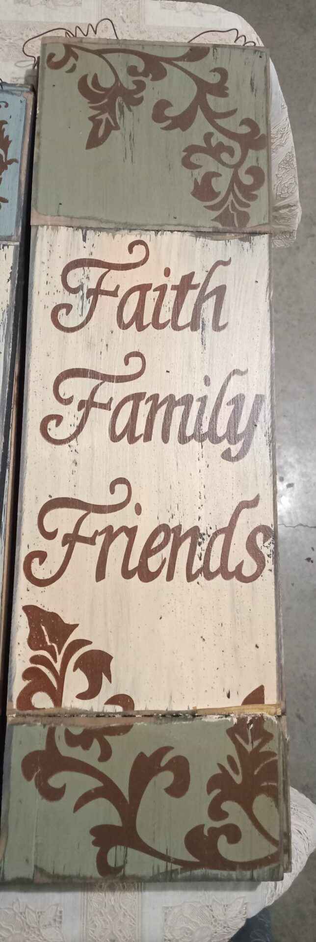 24 x7 in wood plaque faith family friends