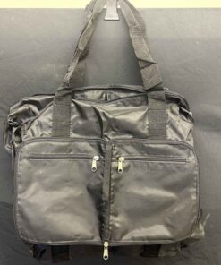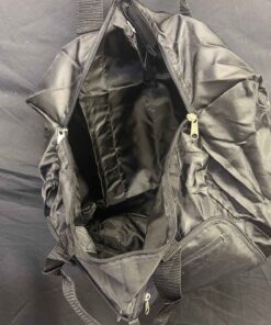 Leather duffle bag in good condition plus fold up nylon duffle bag. Fahrenheit brand. Bottom measures 21" x 12". Comes with shoulder strap. Nylon bag is quite roomy, folds up to a 8x7" package.
