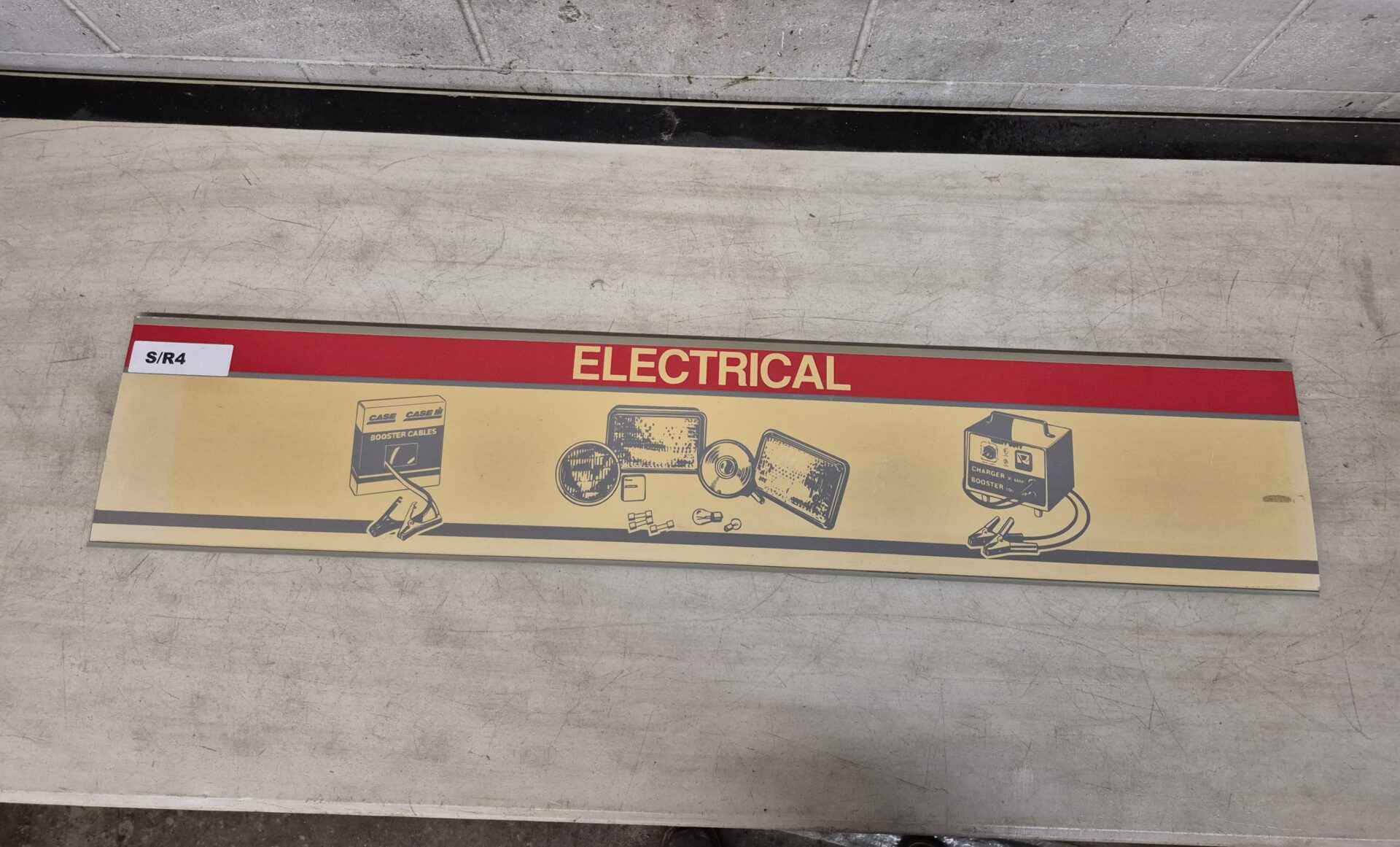 Electrical parts.....shelf header....let the customer find his own merchandise without having to hire a extra employee