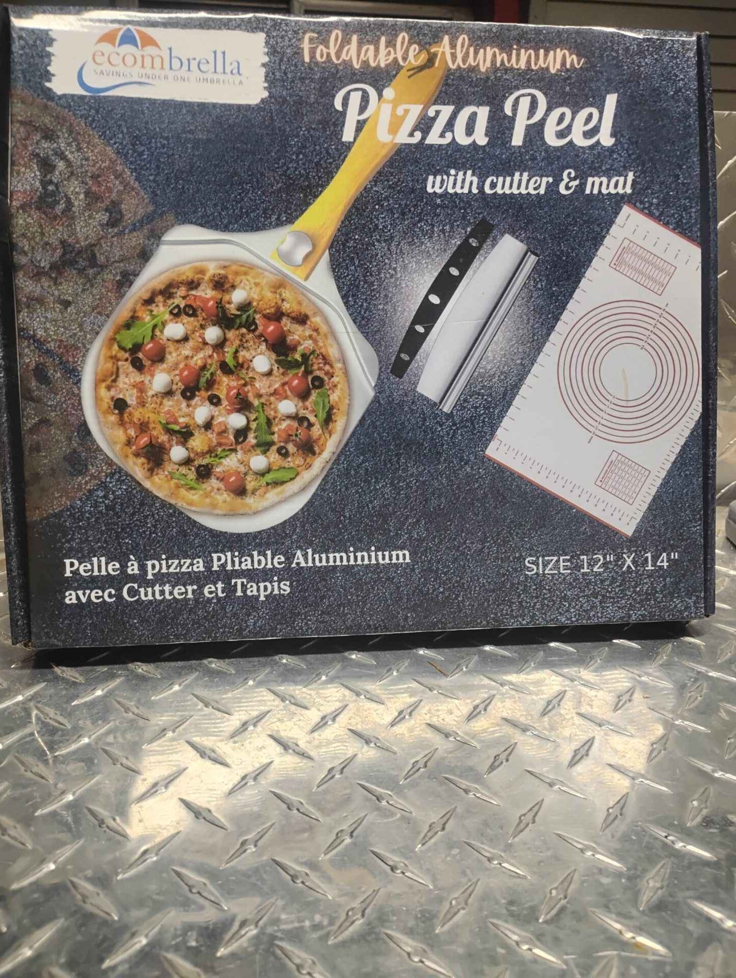 Foldable aluminum pizza peel with cutter and mat