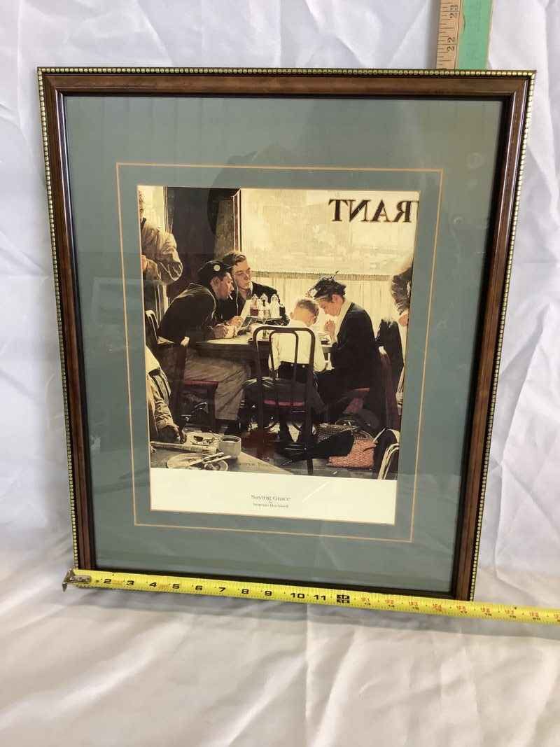 Framed Art Norman Rockwell “Saying Grace” 17” x 21”