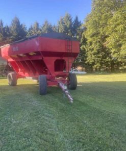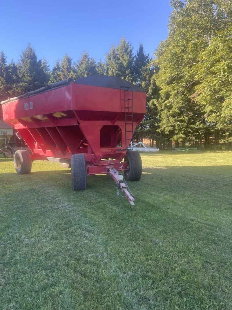 A 750 bushel Gerber gravity wagon wagon on Horst gear with brakes and tarp always stored inside