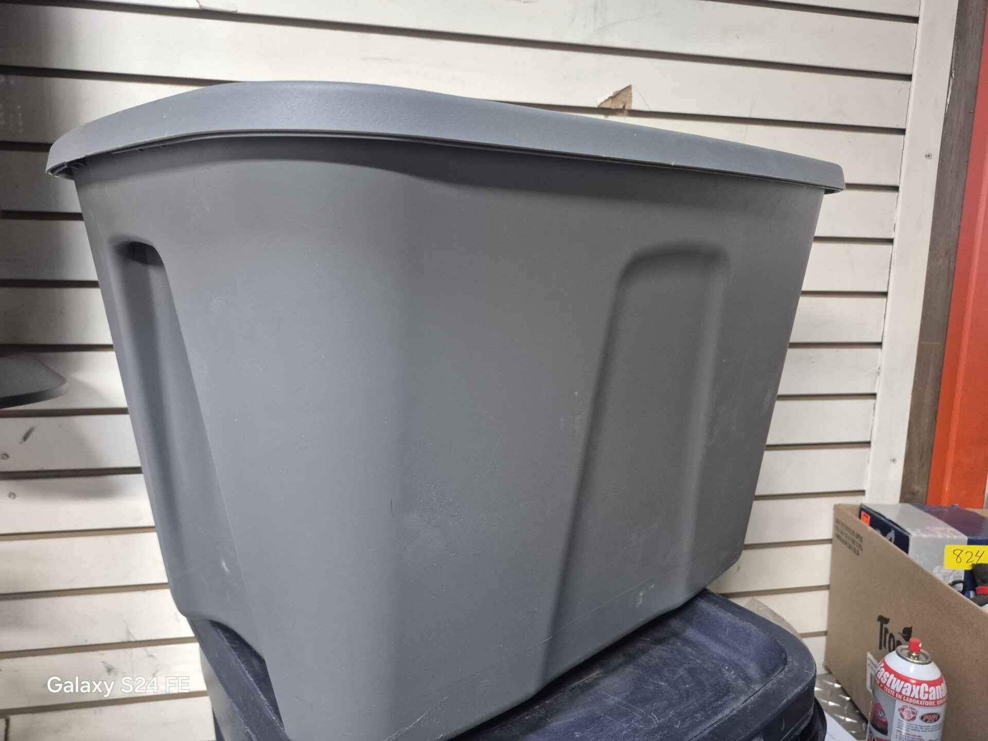 Gray storage tote with lid