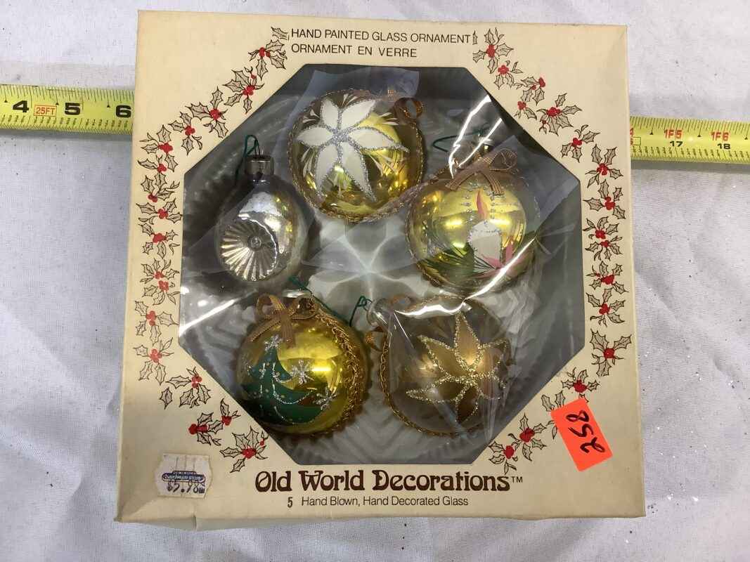 "Old World Decorations, 4 Hand Painted Glass Ornaments
