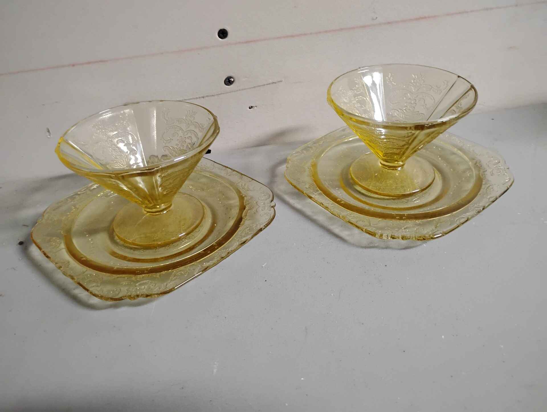 Qty 2 yellow depression glass sorbet and dessert plates