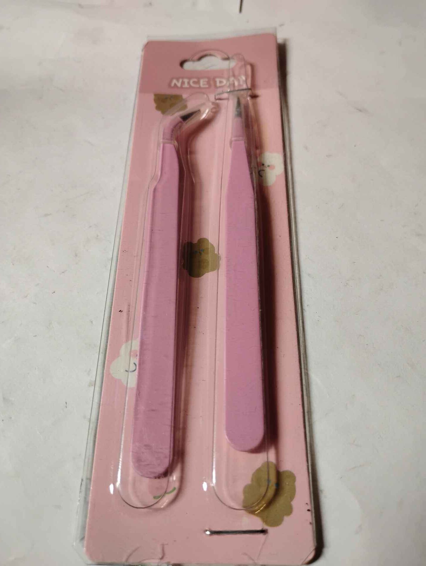 Set of two pink tweezers