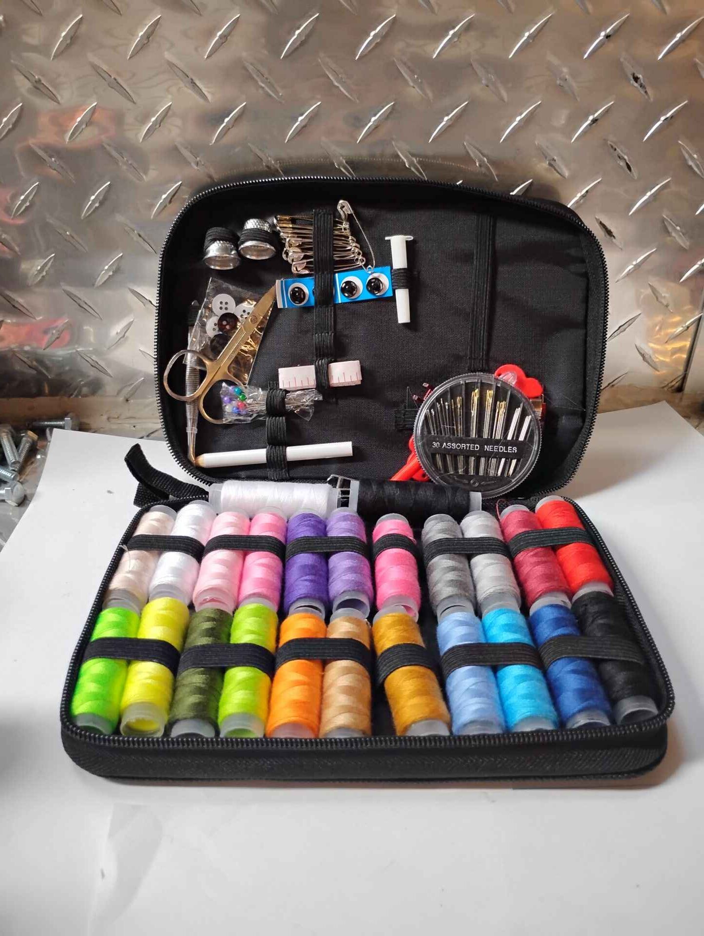 Sewing assortment in black case