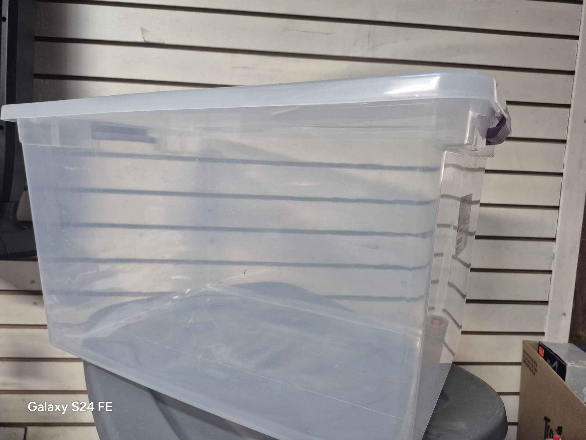 Sterlite 62 l clear with locking lid purple latch ....LID HAS CRACK