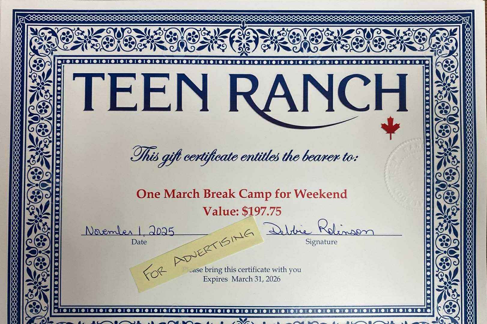 1 STAY OVER WEEKEND AT TEEN RANCH DURING MARCH BREAK