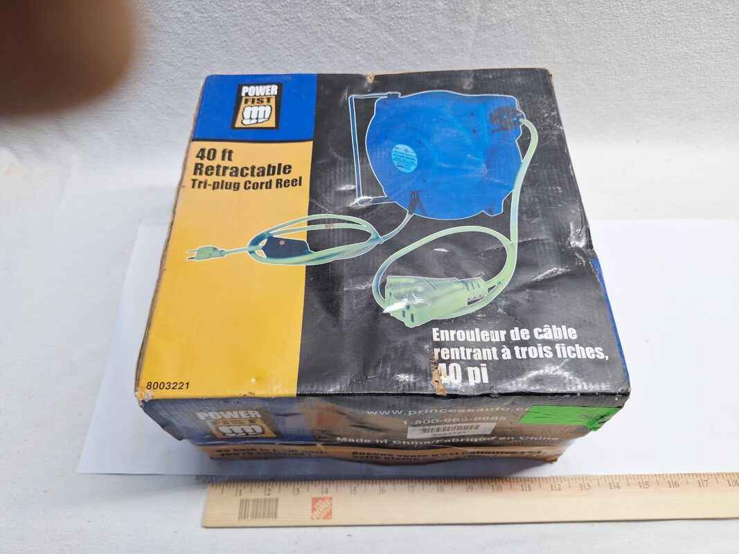 Ax – 40 ft retractable 3-plug extension cord – unused, in unopened box