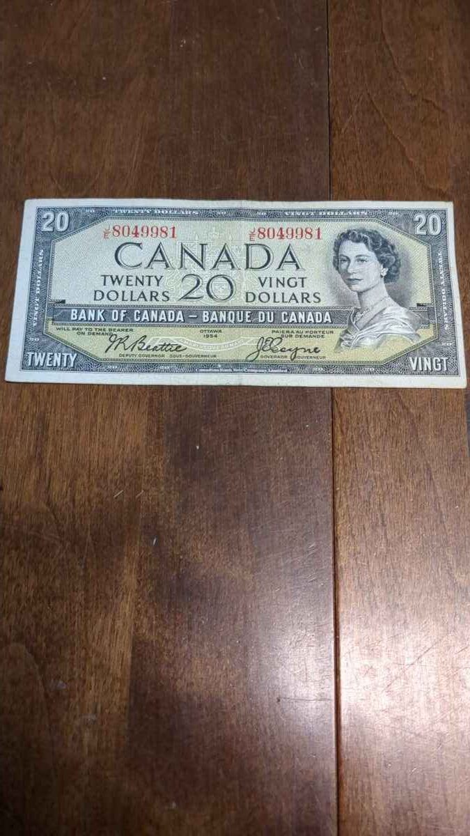 1 1954 Canada 20 dollar bill.