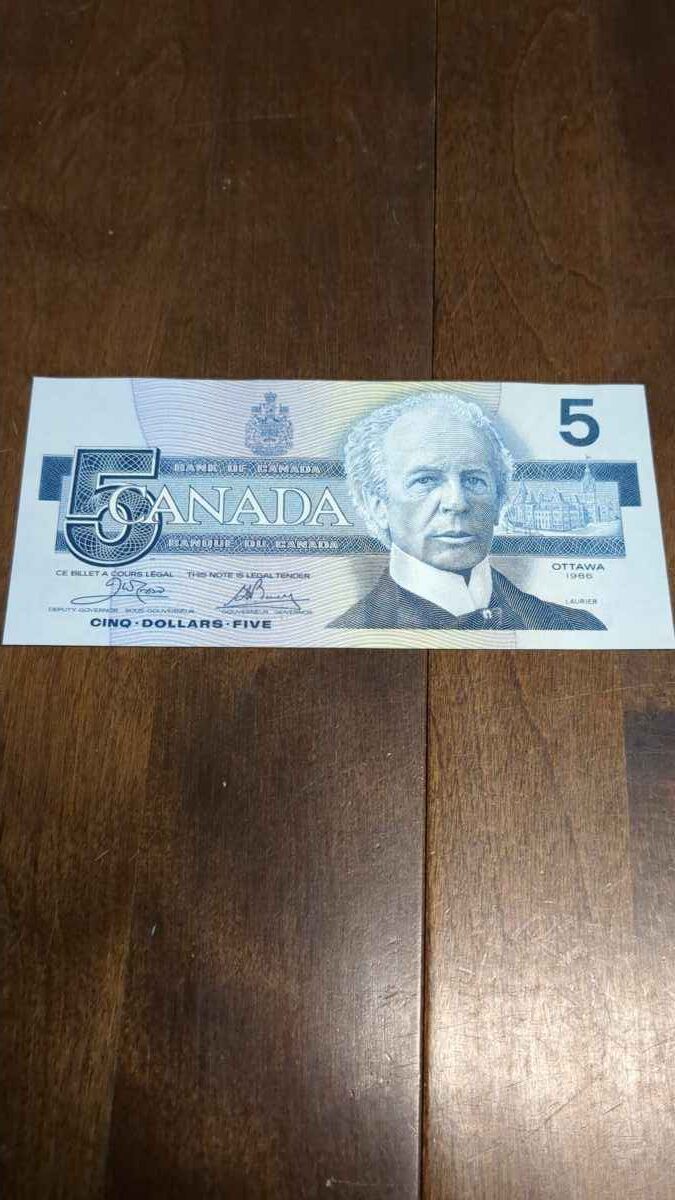 1 1986 like new Canada 5 dollar bill.