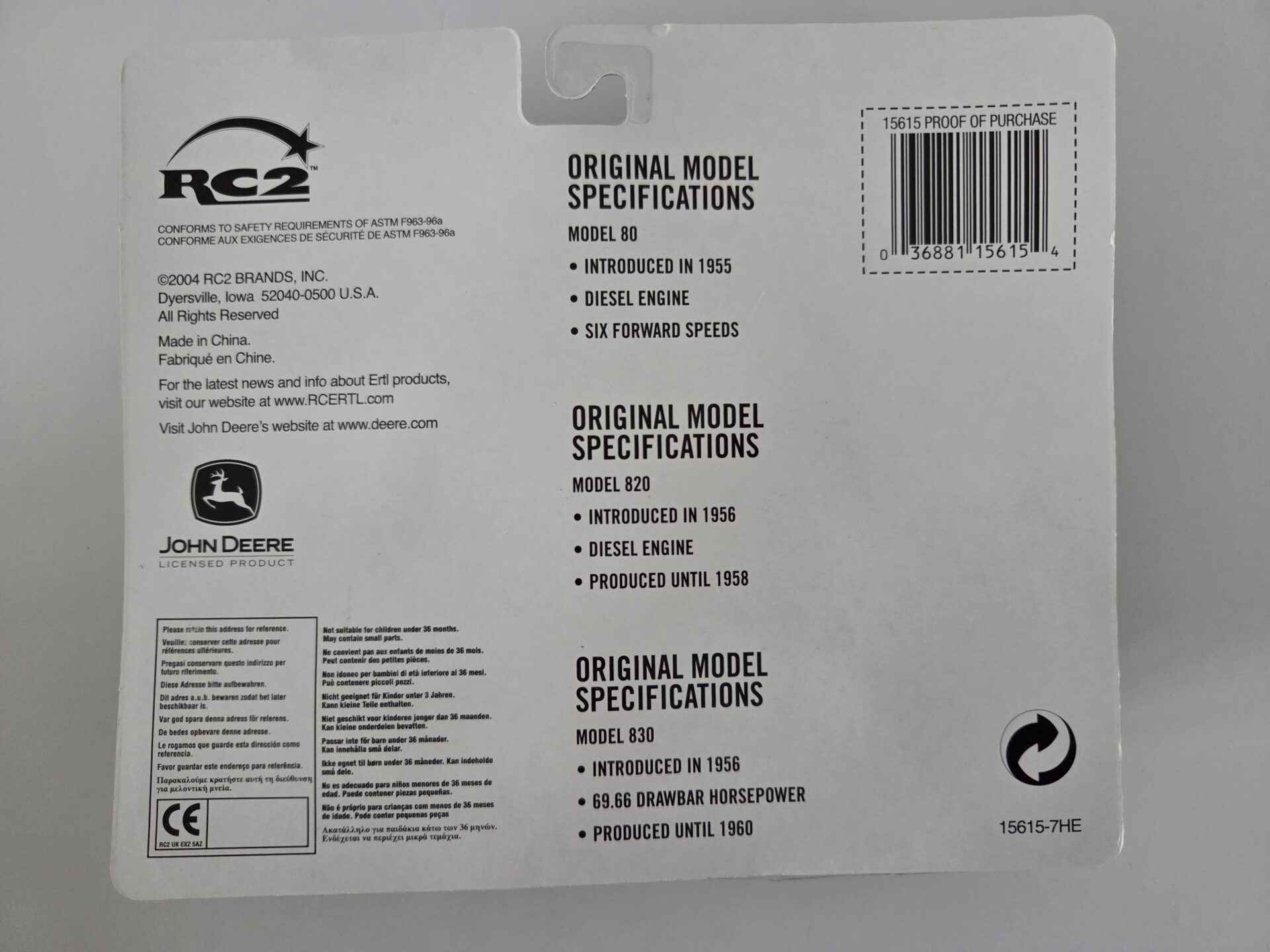 1/64 – John Deere Tractor Set – 80 / 820 / 830 – New in box (box is open)