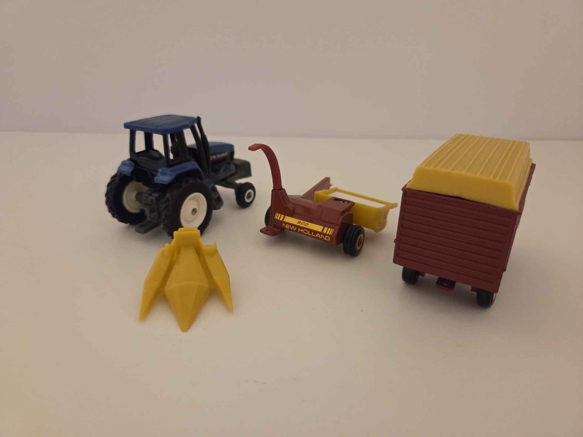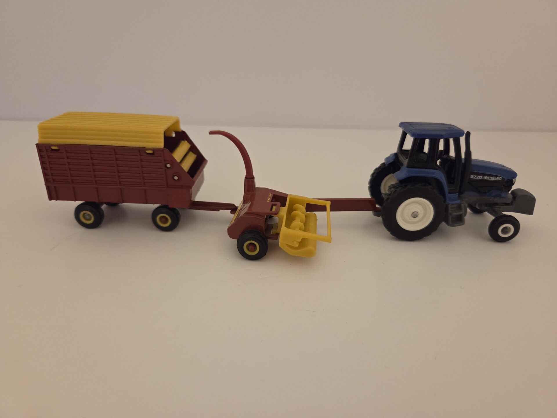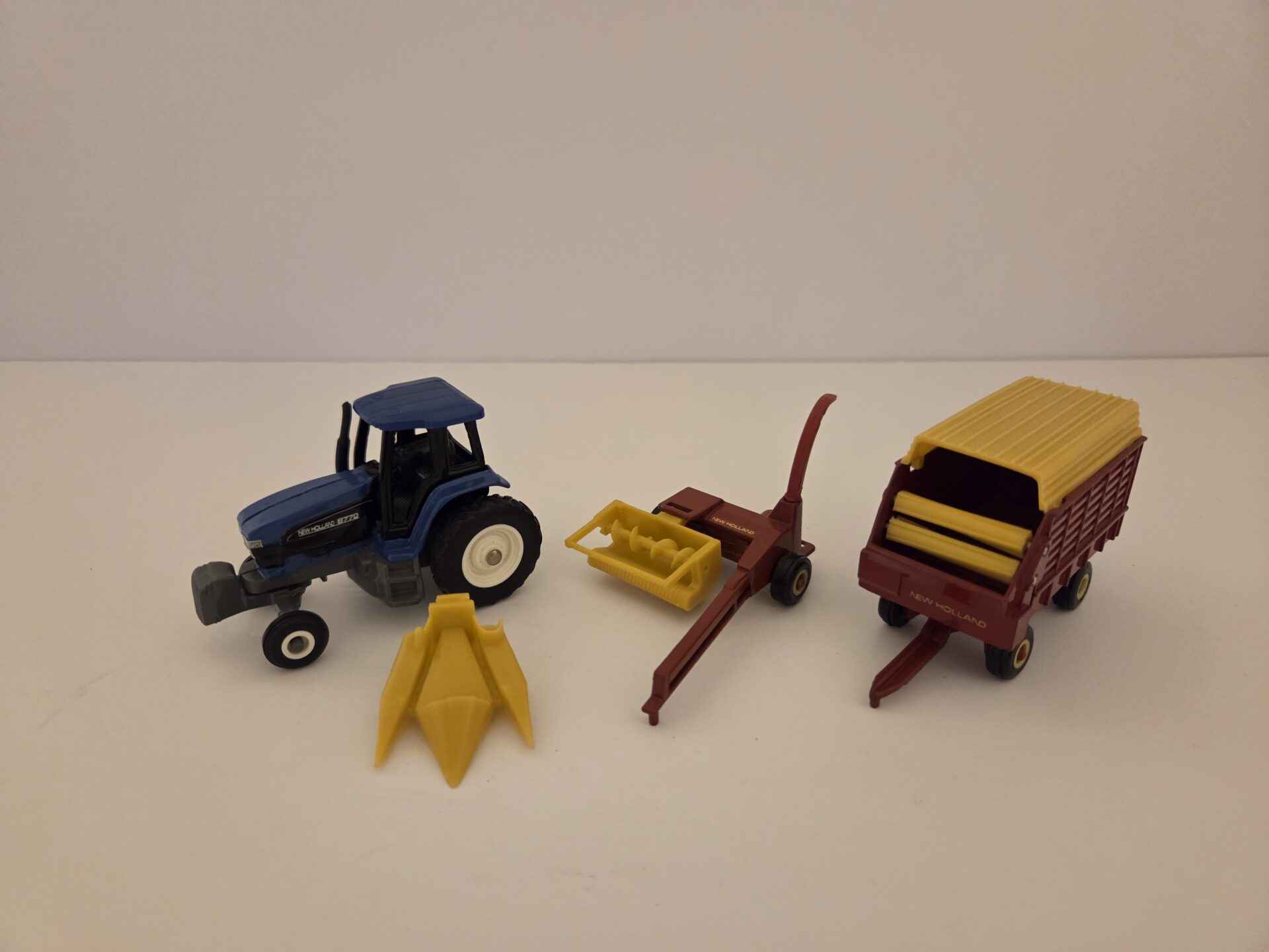 1/64 – New Holland 8770 Tractor with 900 Forage Harvester with Two Heads and Forage Wagon – Loose/No Box – Made by ERTL