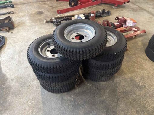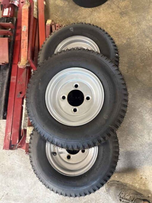10 unused 4.80/4.00-8 tires on 4 bolts wheels