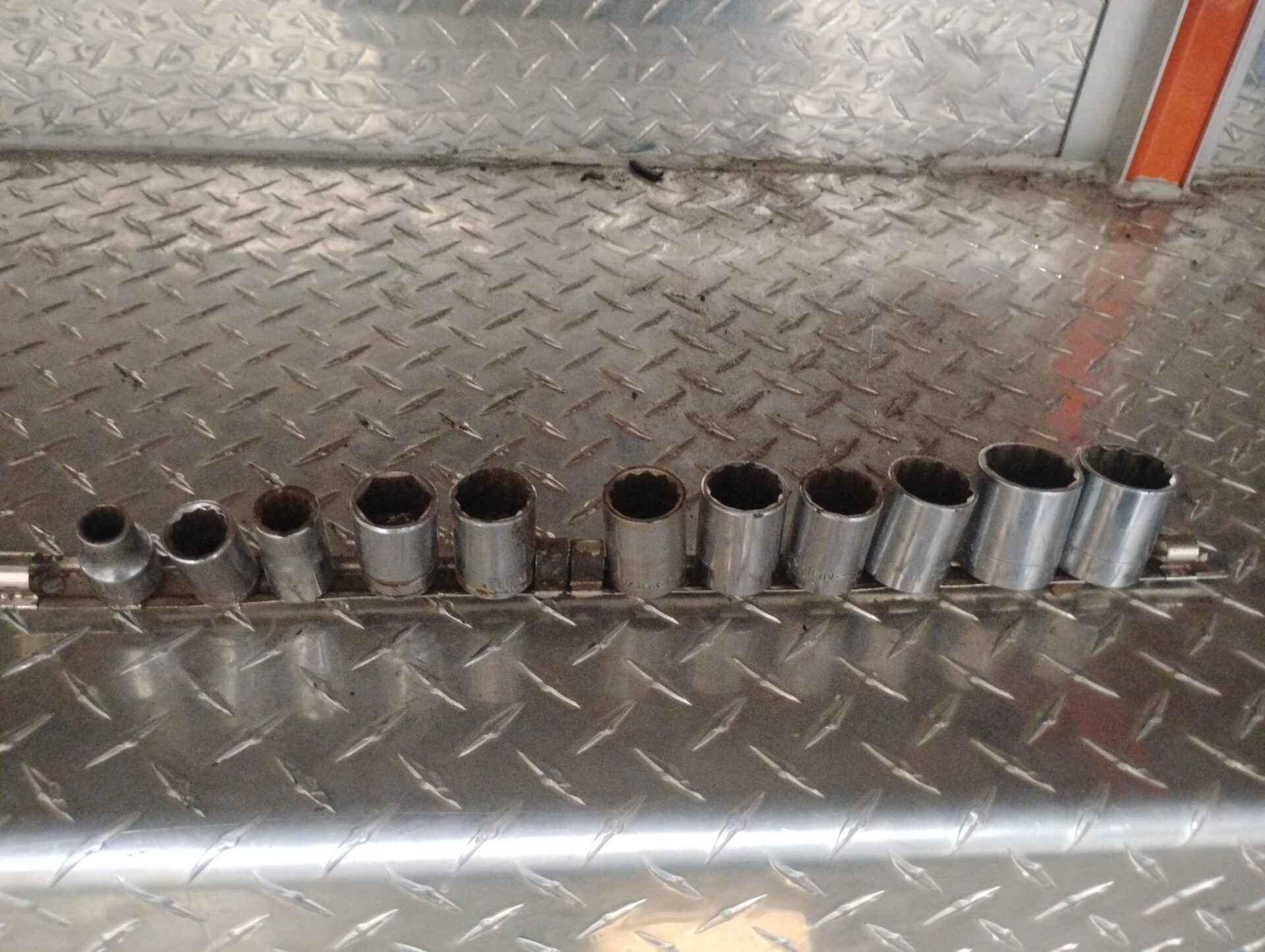 11 piece craftsman and more sockets on metal holder 1/2 drive