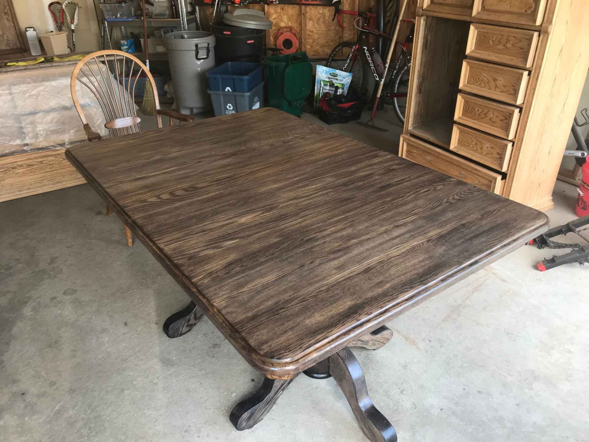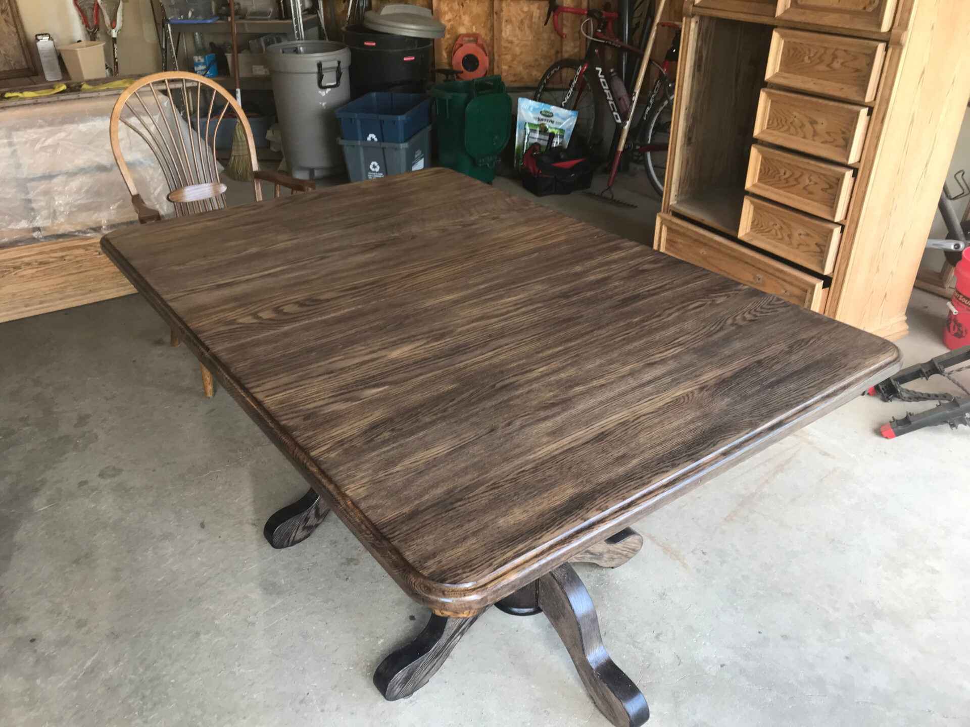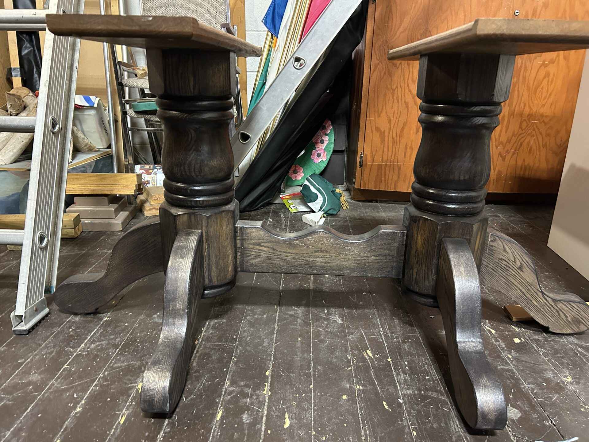 116 – Solid Wood double pedestal table with 3 leaf inserts. Has been completely refinished.
