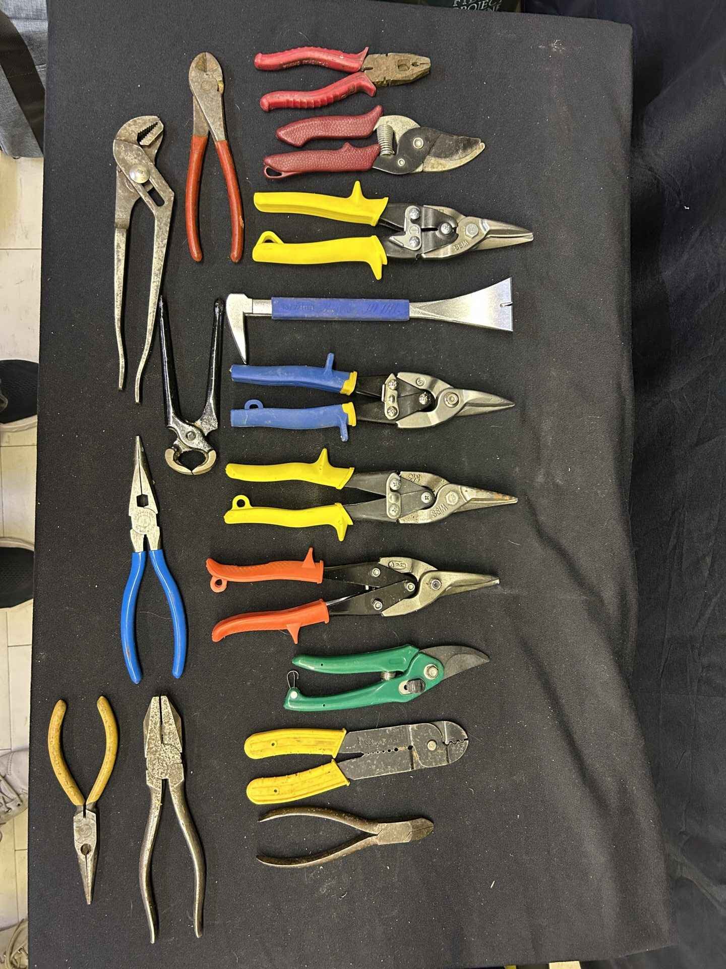 Assortment of wrenches, snips, pliers, garden shears etc. Some new, some not.