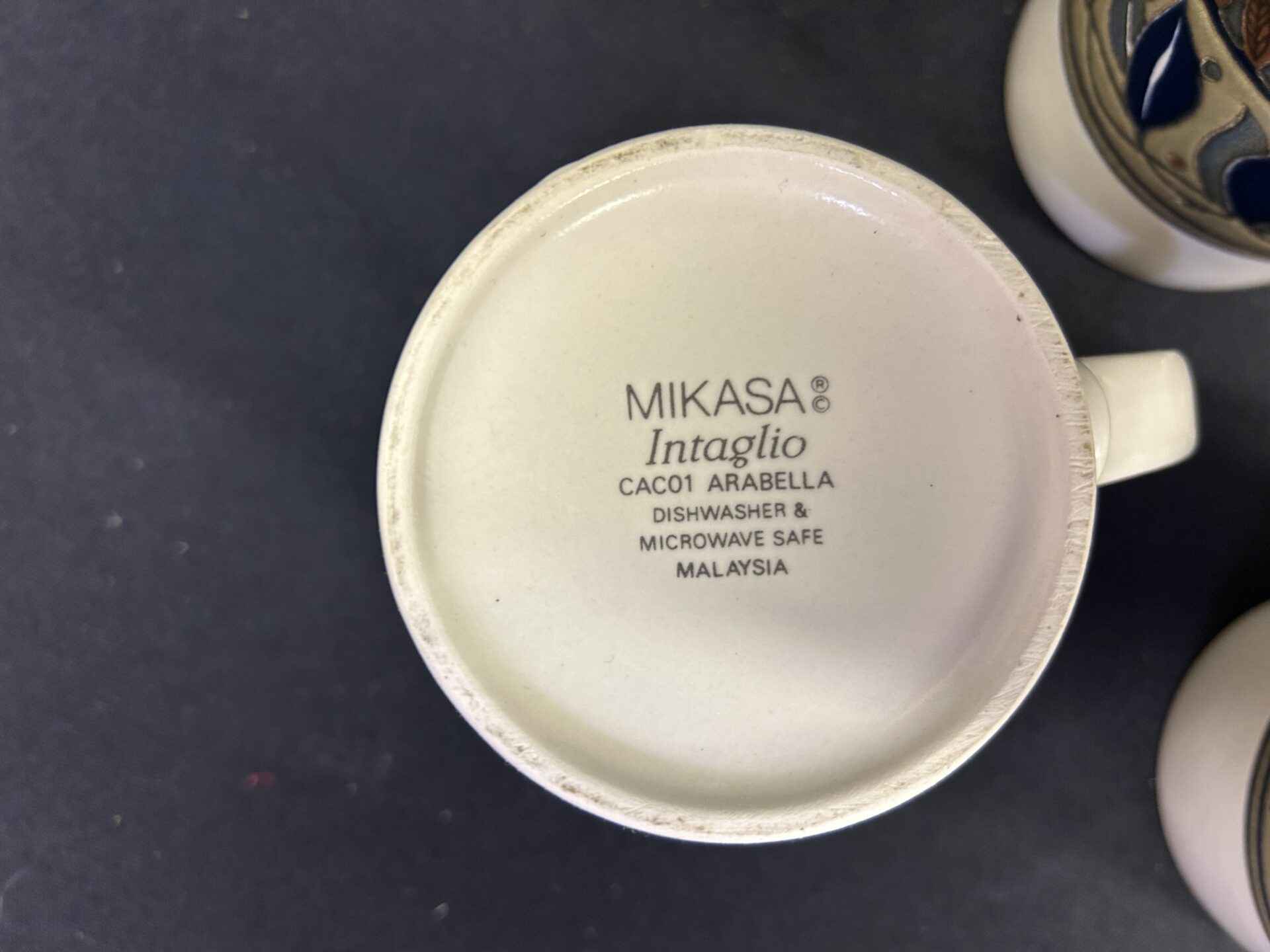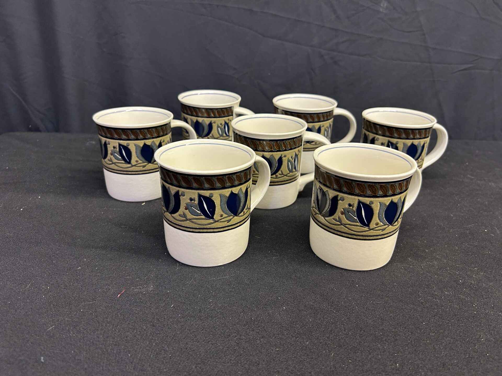 7 Mikasa Intaglio Mugs. Dishwasher and microwave safe. Arabella pattern.