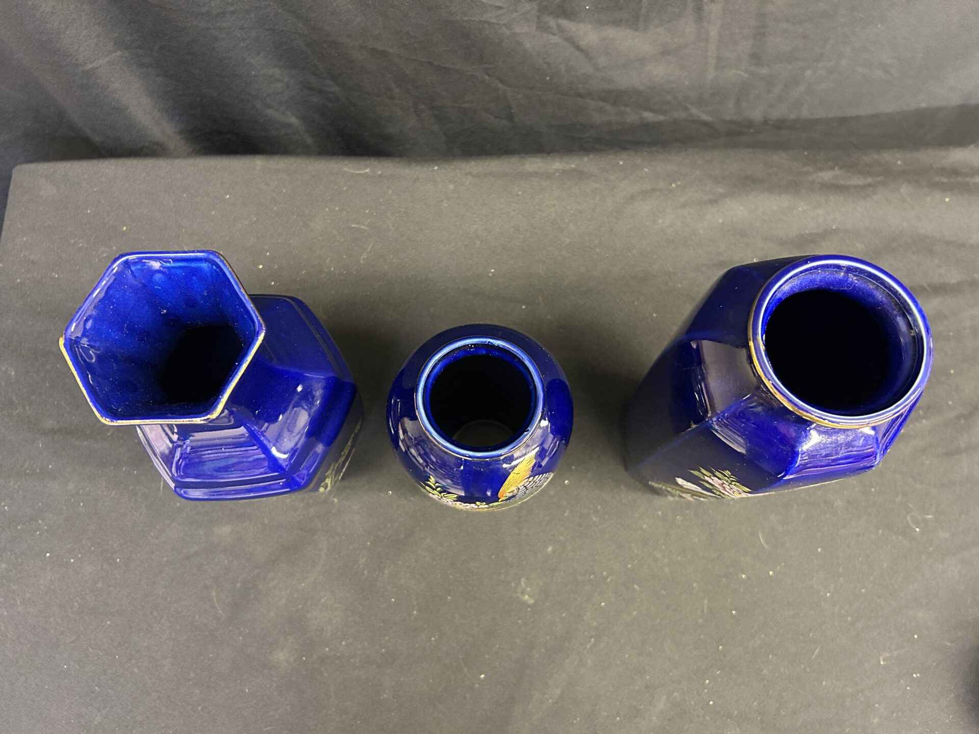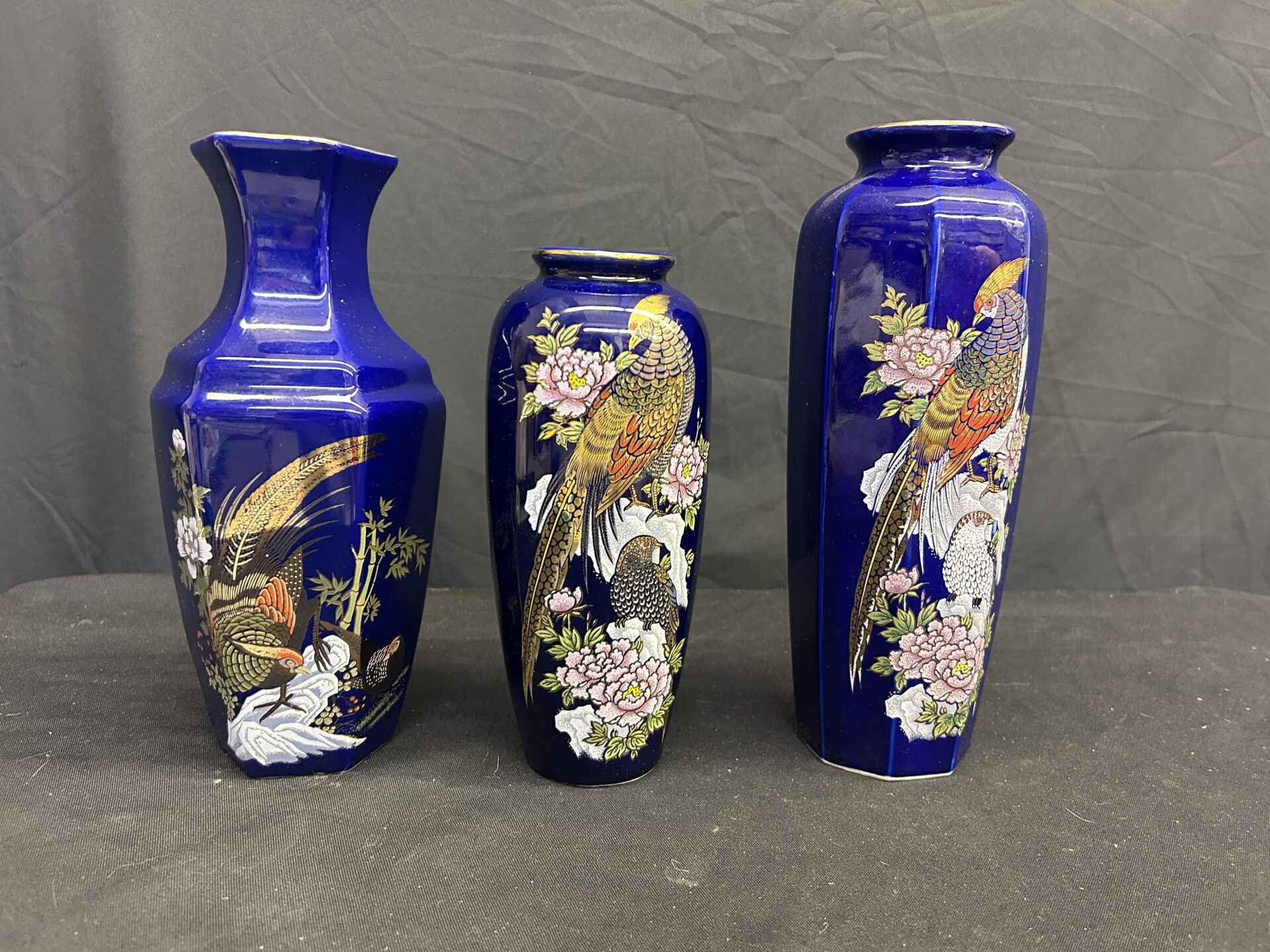 3 Asian style vases. 11″, 10″ and 8.5″ high.