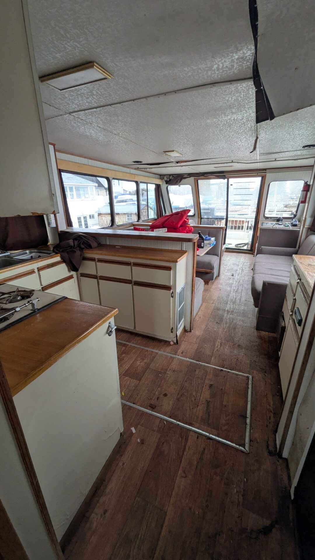 Vessel registration in hand, 1987 pleasure craft house boat, aluminum 13.41 m long, vessel breadth 3.75 m, vessel depth 0.85 m, maker: Three Buoys Houseboat Builders Ltd, good aluminum hall, engine complete, this is a diamond in the rough! A little elbow grease, some ceiling repairs and you have your own private house boat! Sells as is where is, the buyer is responsible to have the boat removed from premise on a scheduled day, with qualified equipment and operators, if in the opinion of the seller or representative the buyer does not have adequate resources to remove the vessel, the buyer will be asked to make another appointment which at that time must secure adequate equipment and operators or risk forfeiting the vessel at their expense. For viewings please call our office at 613 246 5206 for an appointment.