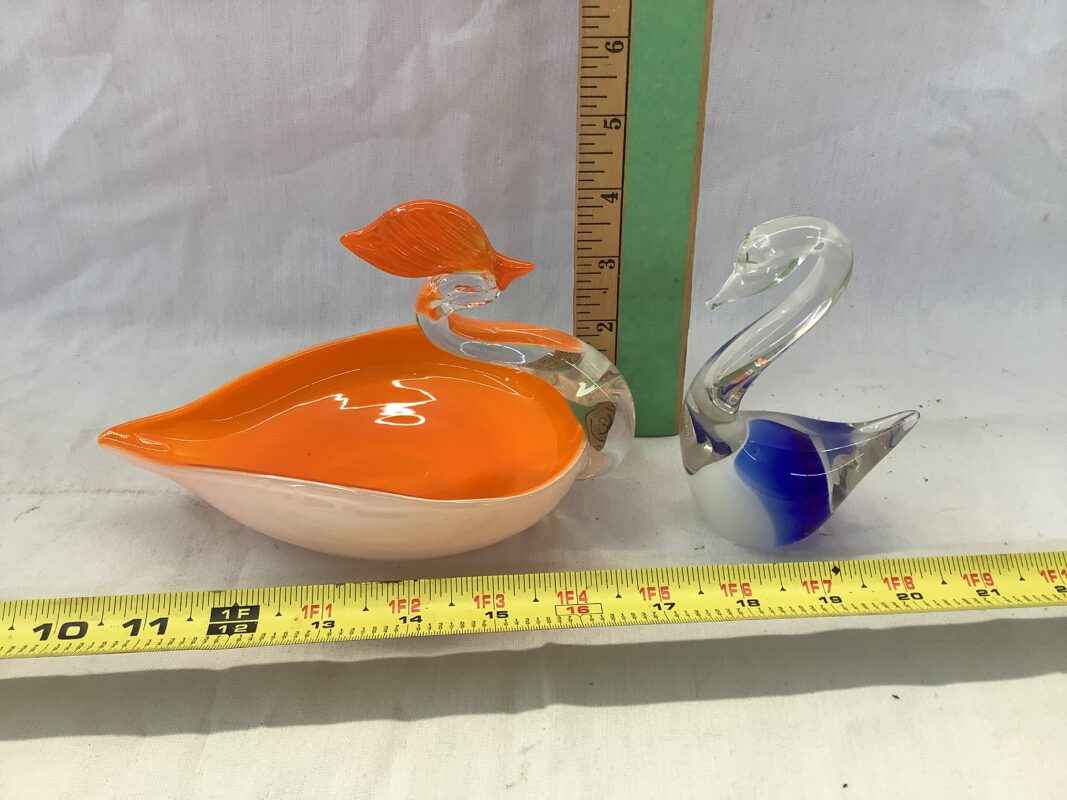 2 Swan Decorative Stretched Glass Pieces