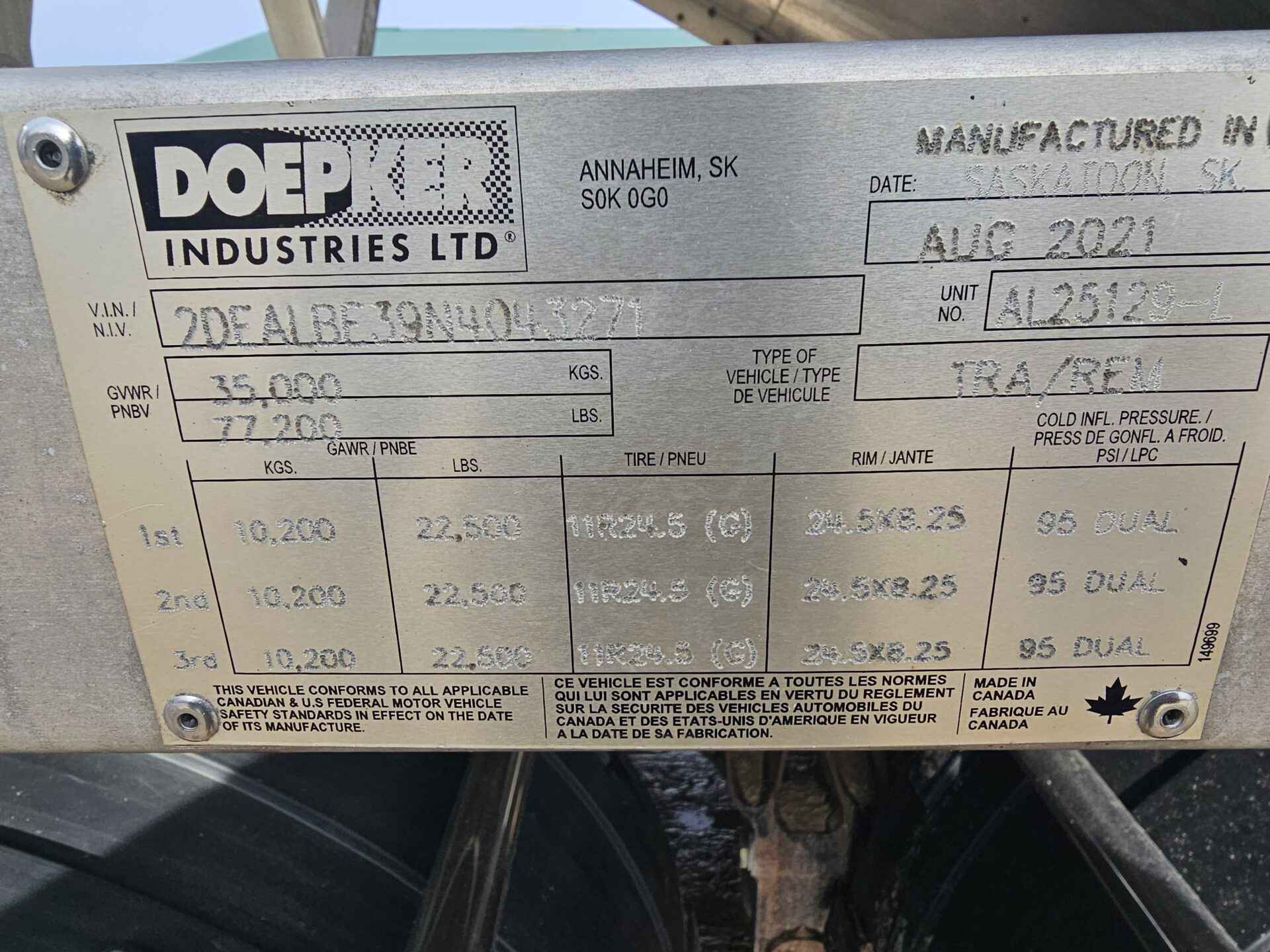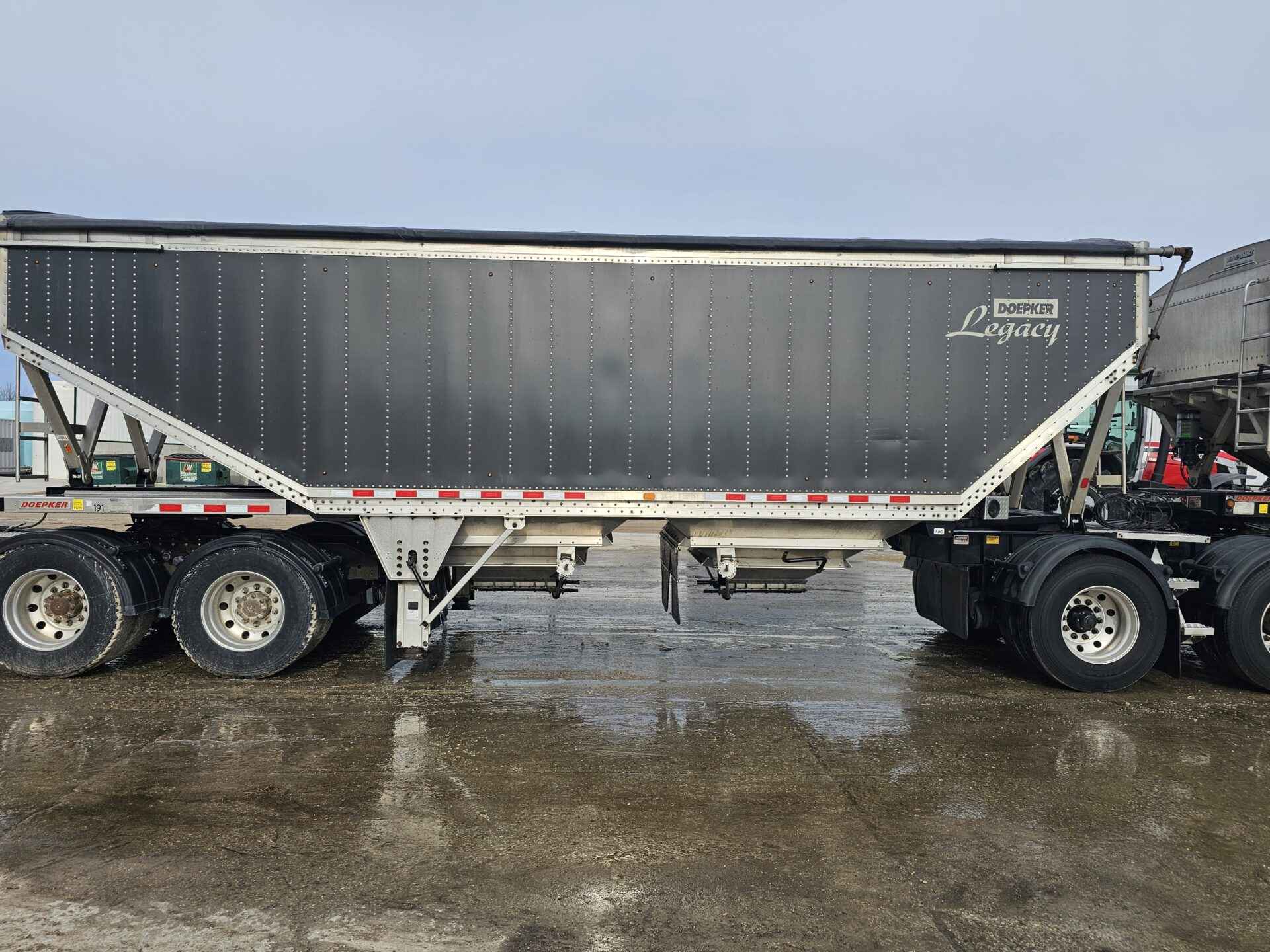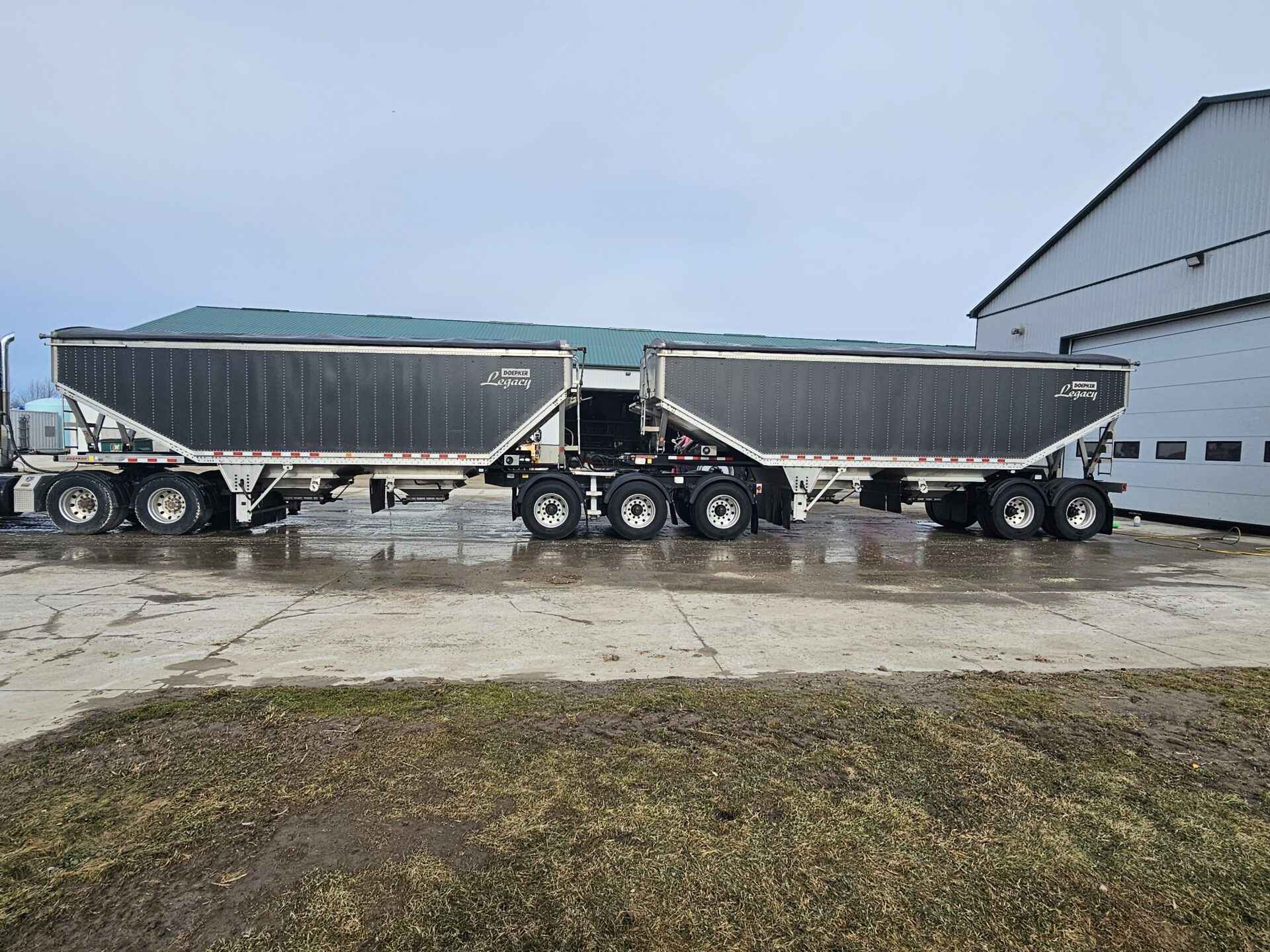 2021 Doepker Legacy Aluminum B-Trains. Charcoal in colour. Smart lift axle system, lifts 2 front lead and rear axle of pup when empty. Oscillating fifth wheel. Auto greaser. New airbags. Tires from 50-80%. Overall nice clean trains, couple side wall scratches. Safety good till November.