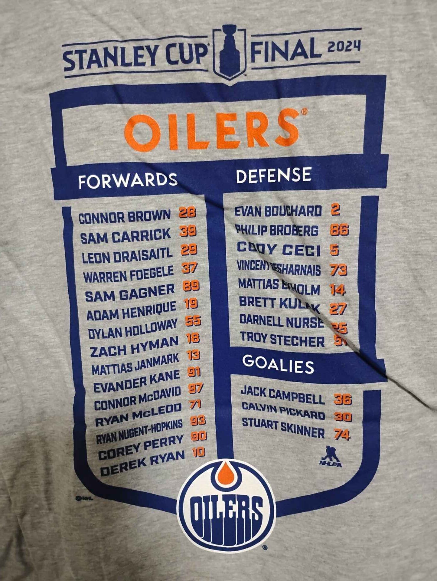 2024 Edmonton Oilers t-shirt Stanley Cup finals with players name on back