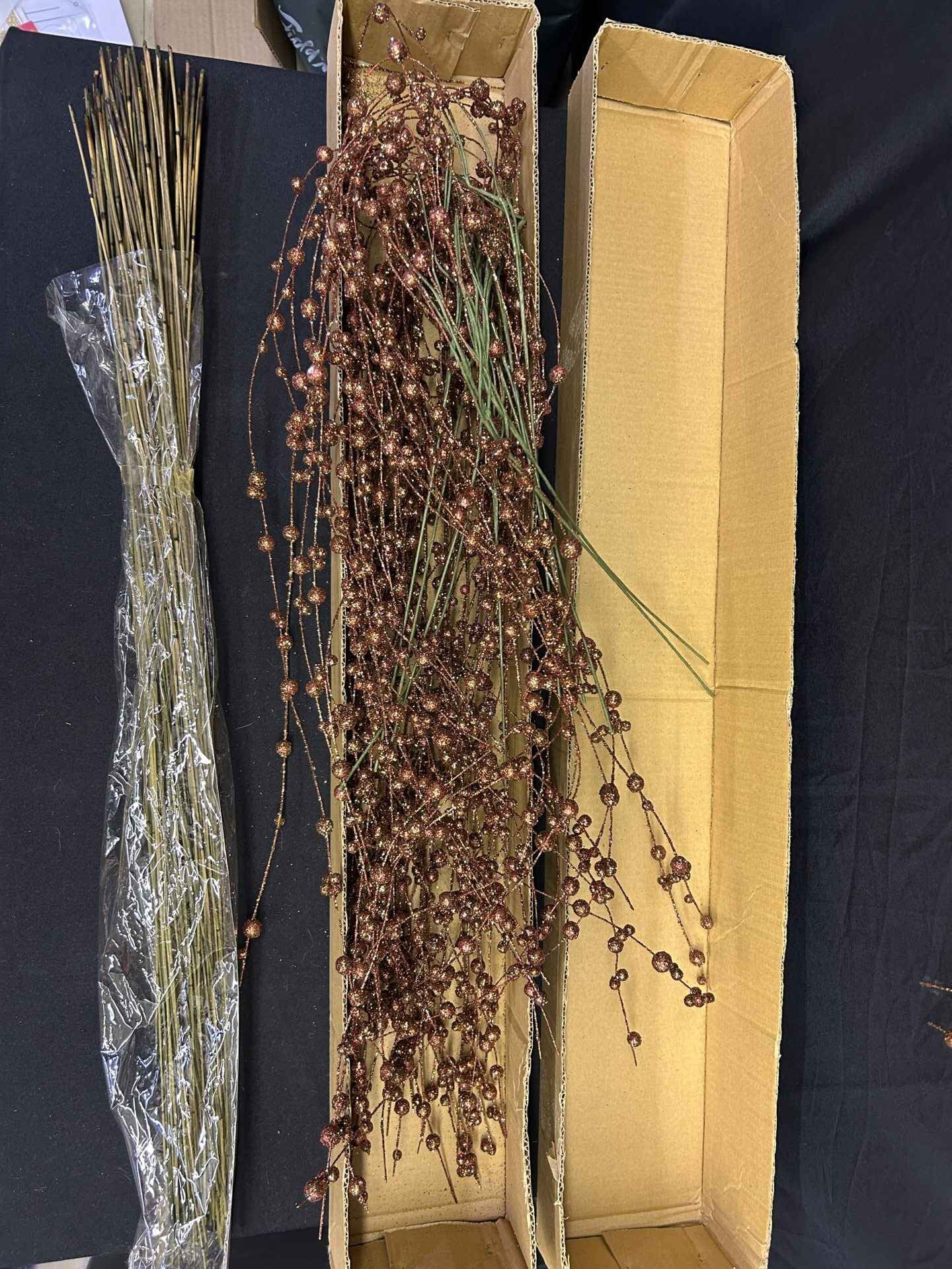Décor pieces. Reed bamboo thin moss green. Berry with glitter décor. 24 pieces. Straight Tamboo Gold.
