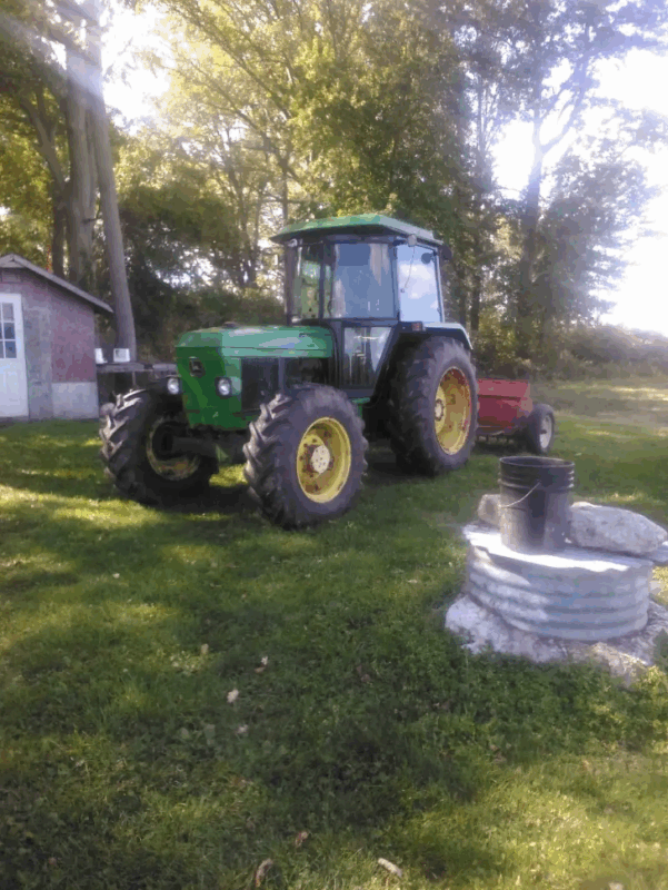 1992 John Deere 2650 tractor (80HP), in good running condition 6900 hours, new clutch about 100 hours ago, hydraulics 3 point hitch in good working order, tires: 35% thread remaining, key includes, some lights in working order.4+4 works but stays engaged, needs some electric work to disengage,