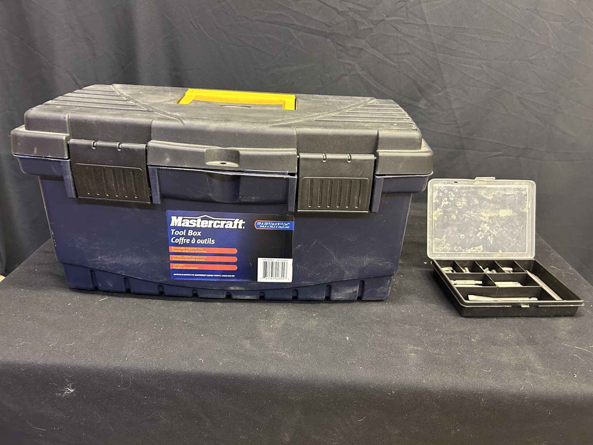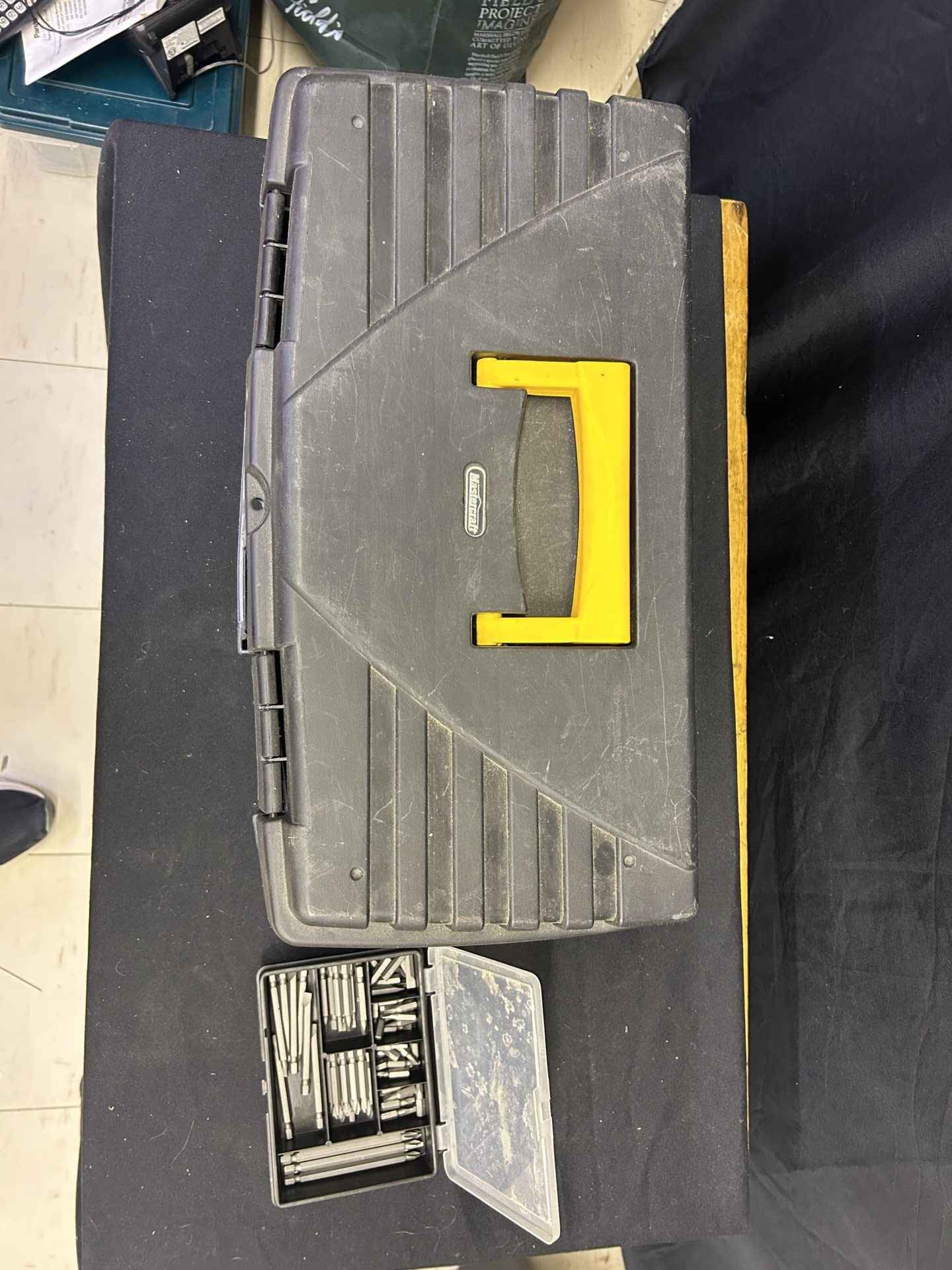 Large plastic tool box. 20 x 10 x 10. Container of screwdriver bits.