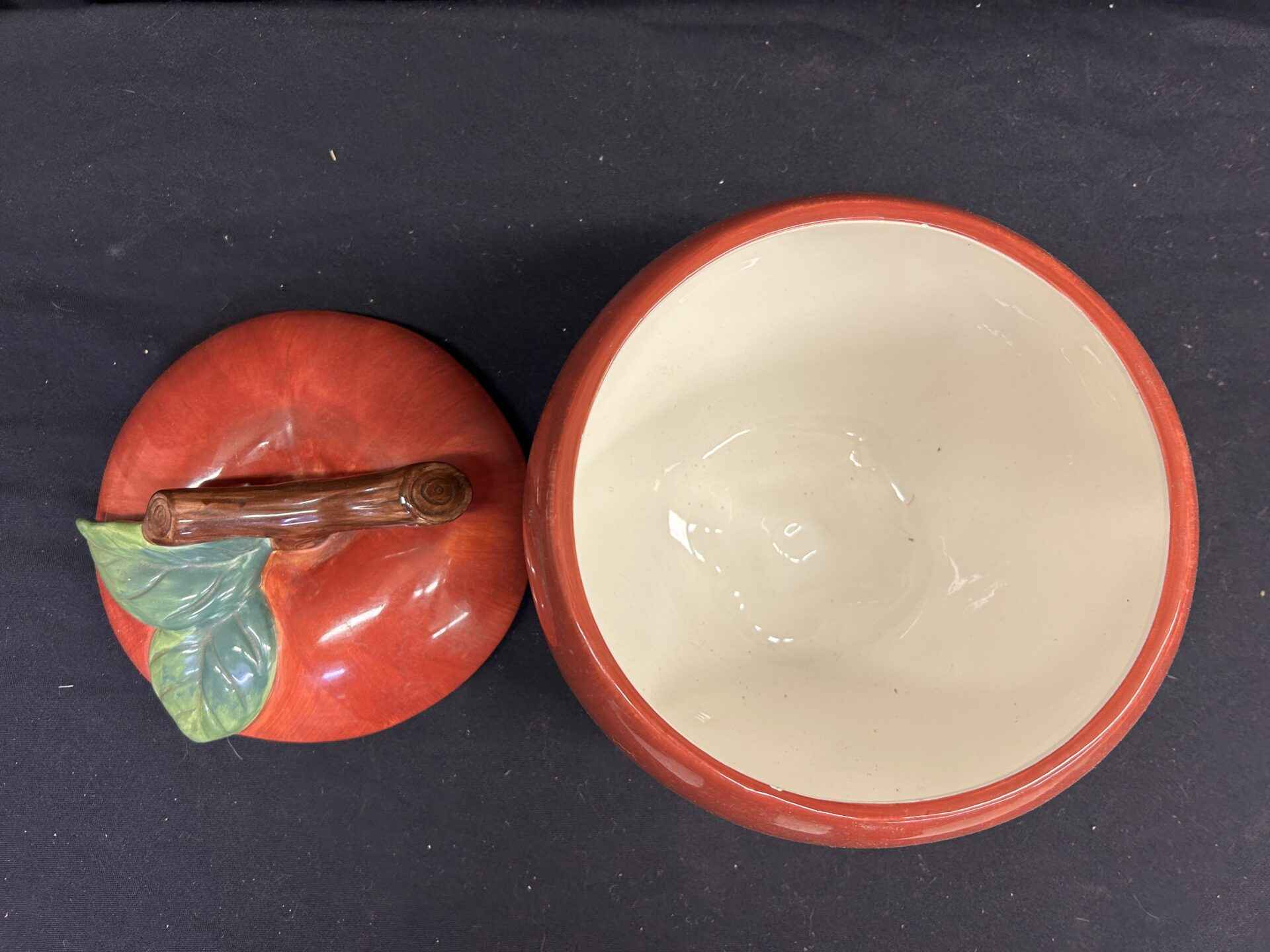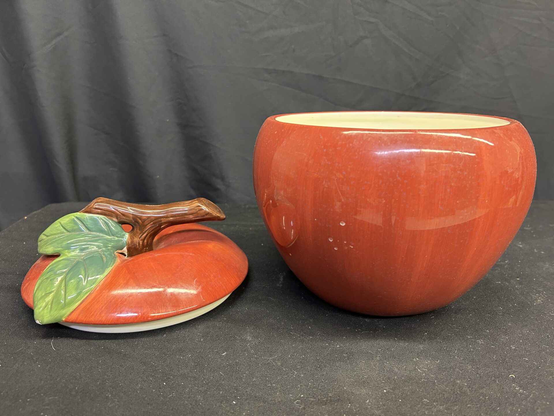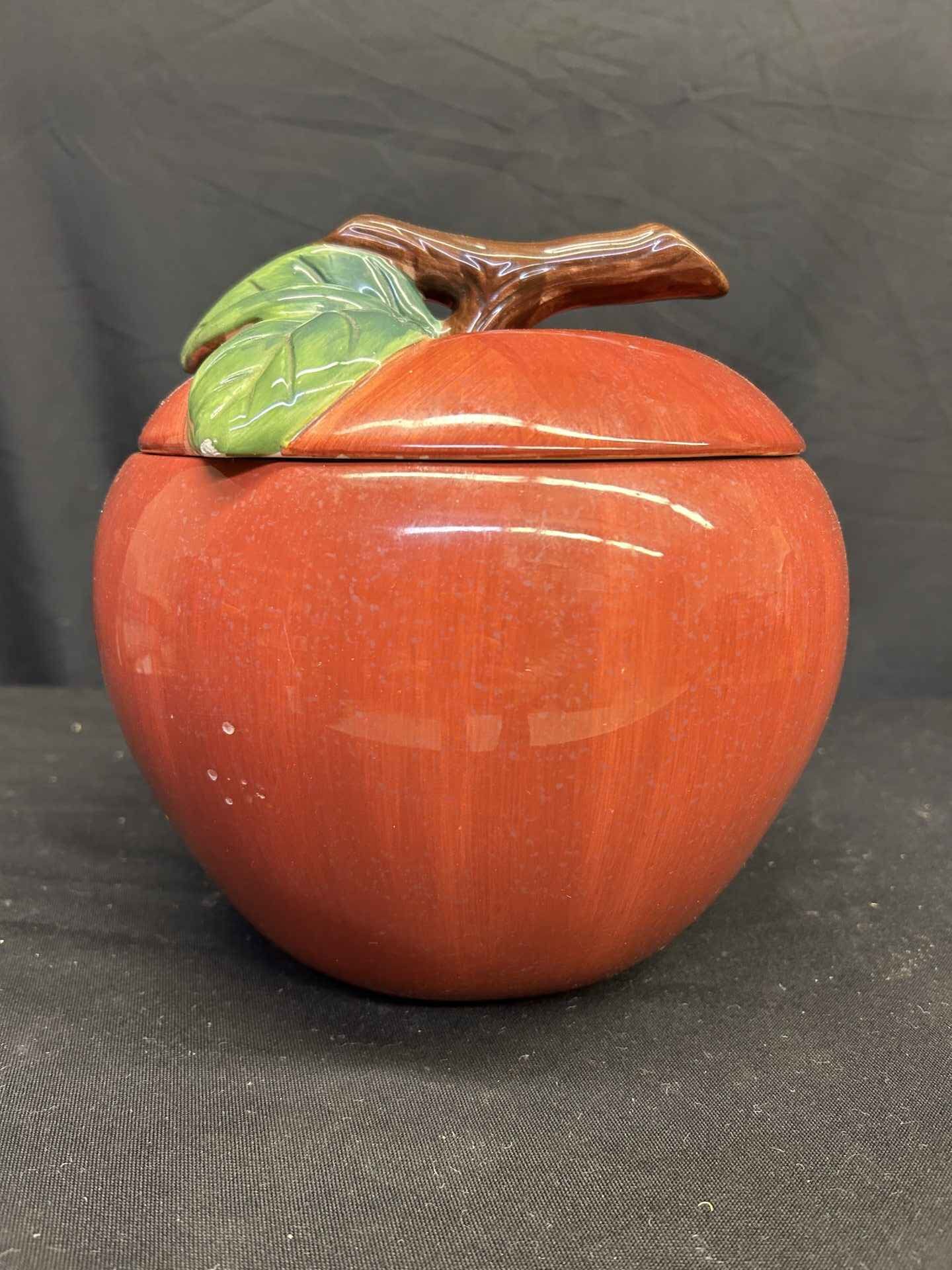 Apple cookie jar. 9″ tall x 7.5″ dia. Ceramic. Brand new.