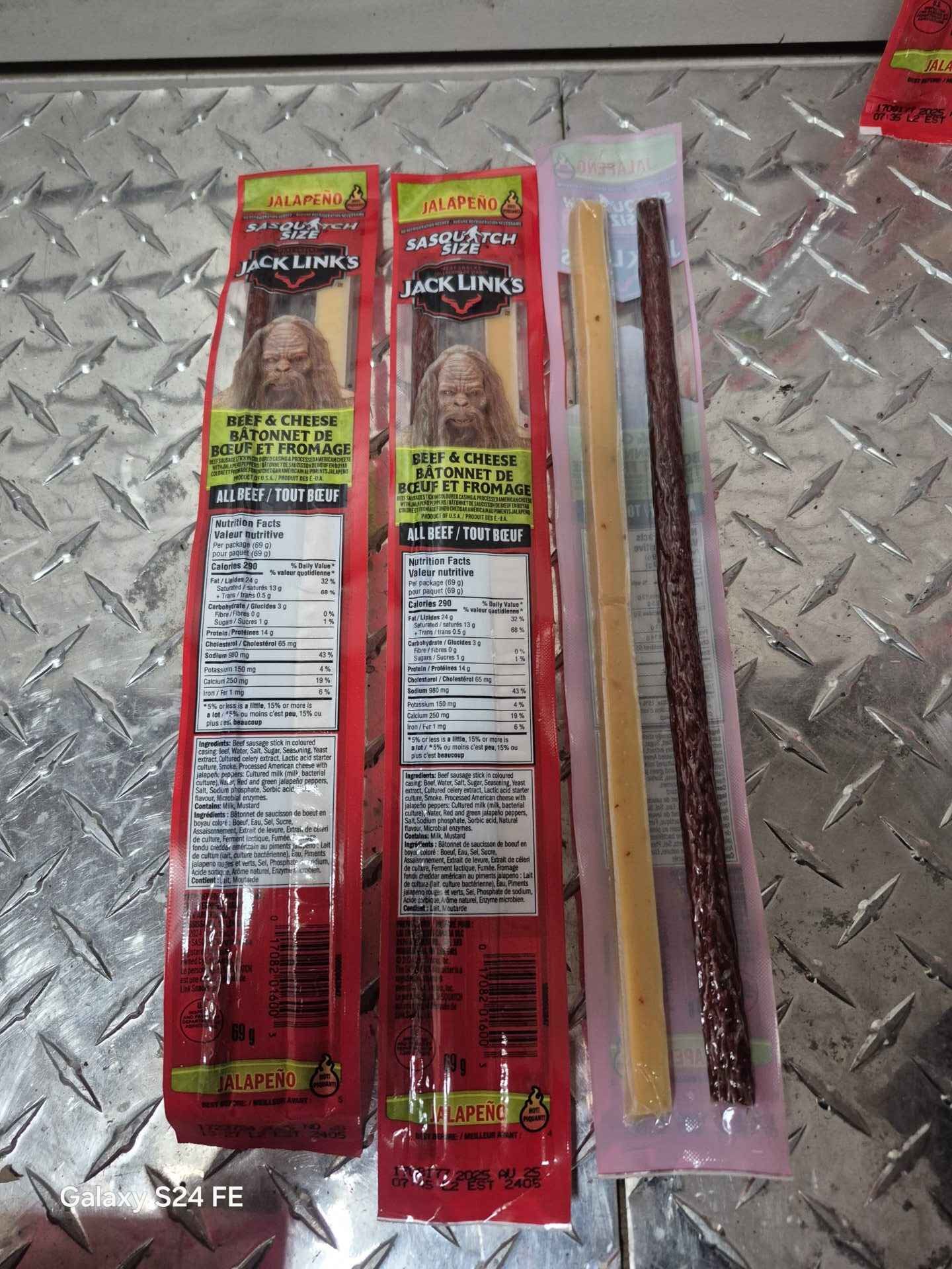 3 Cheddar and beef jalapeño slightly outdated