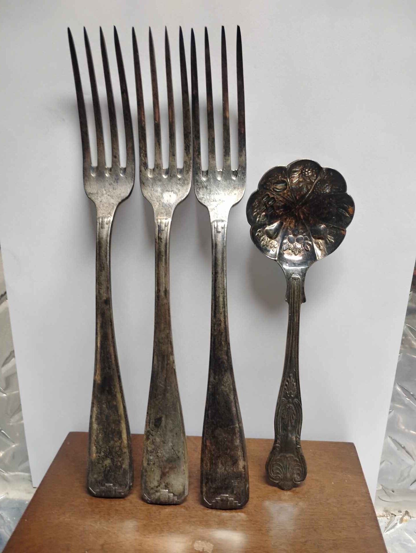 3 forks and dessert spoon