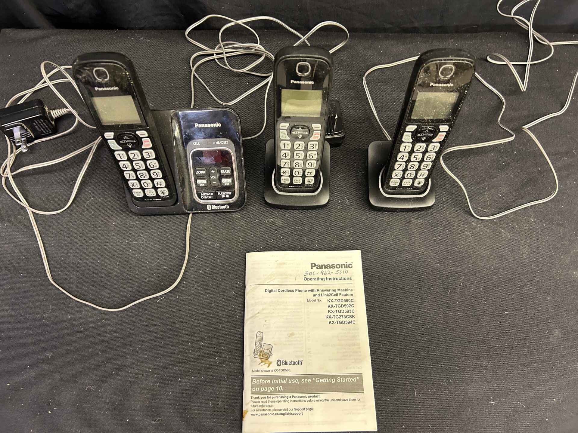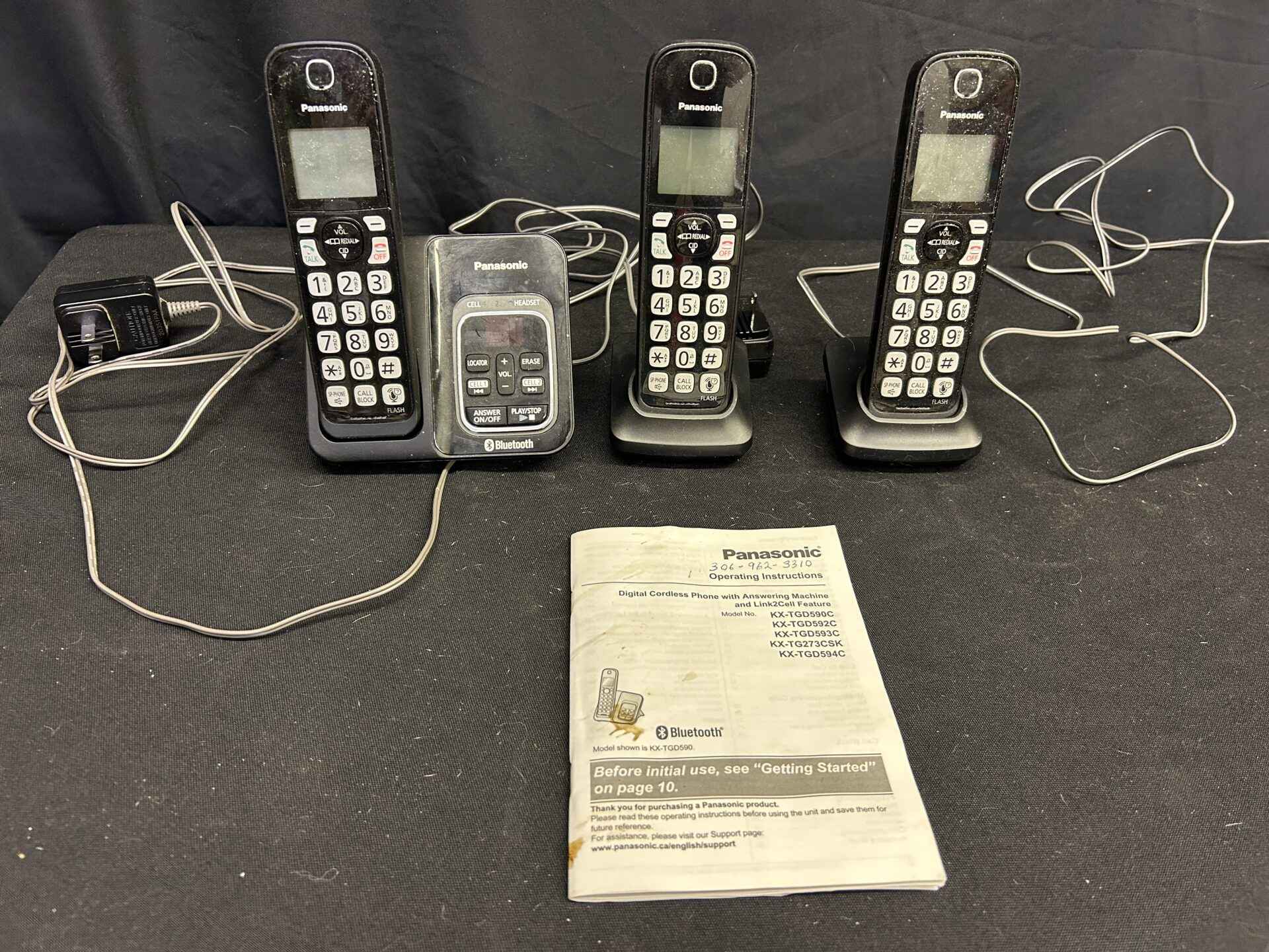 Panasonic Digital cordless phone with answering machine and Link2Cell feature. Includes 3 handsets.