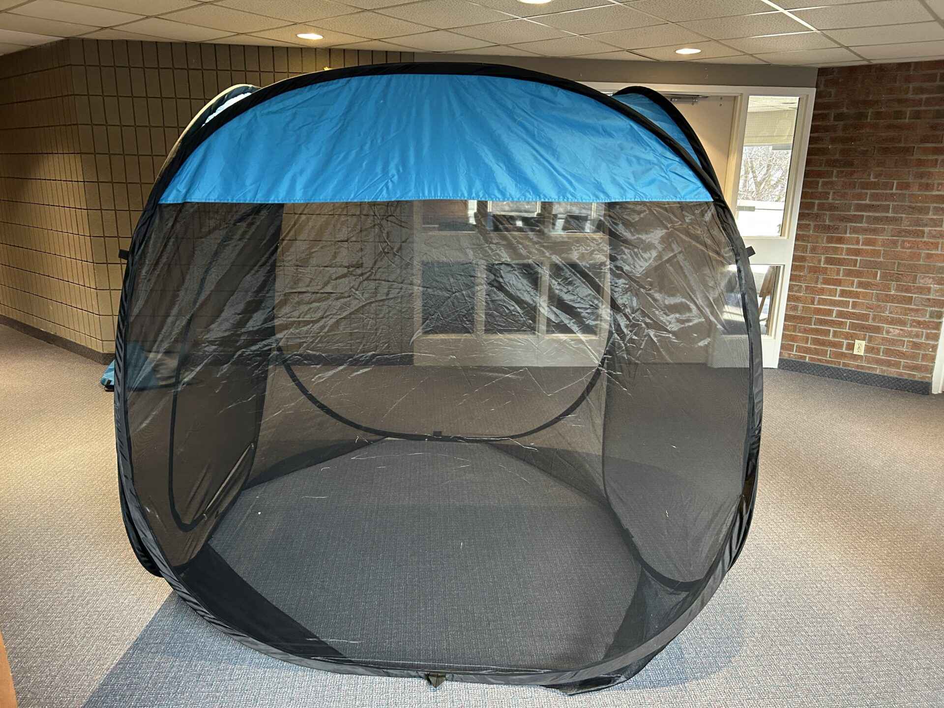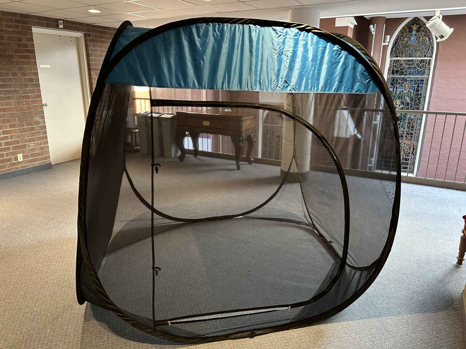 Anti-mosquito Tent, 70x70x70″, dining, sun shade room, tabs for pegs so it won’t blow away. Folds into 28″ round backpack carrier
