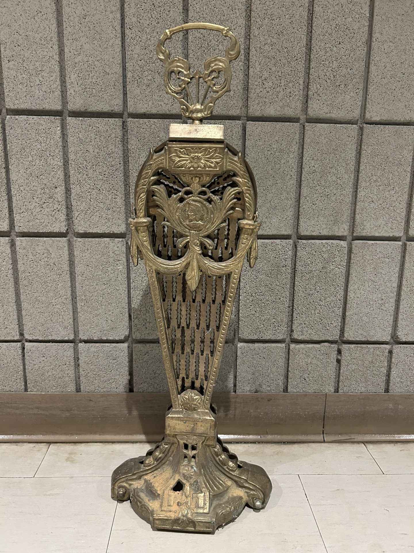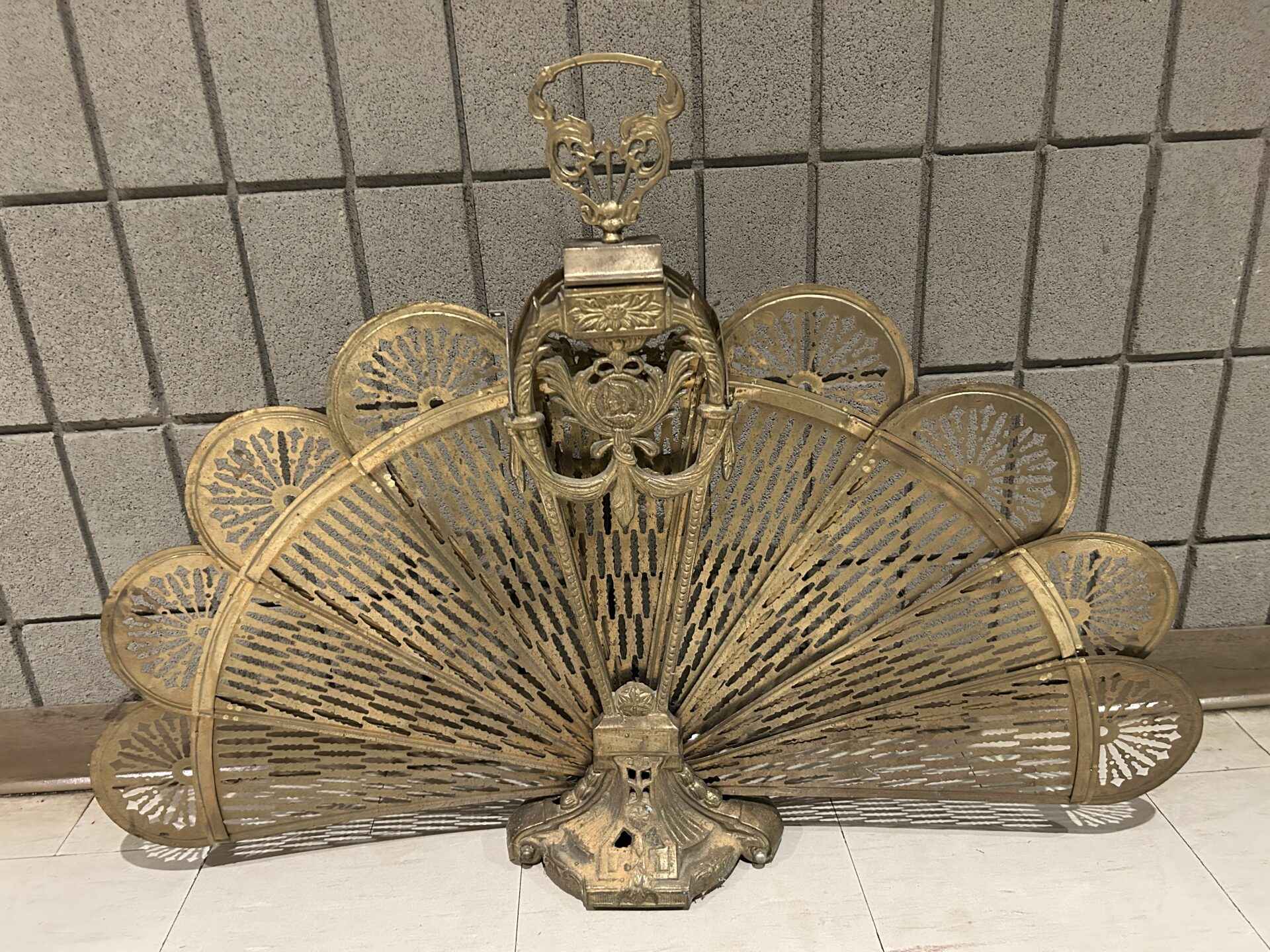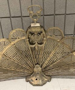 Fireplace fan for the front of a fireplace or stove. Vintage. 36″ wide x 27.5″ high. Brass.