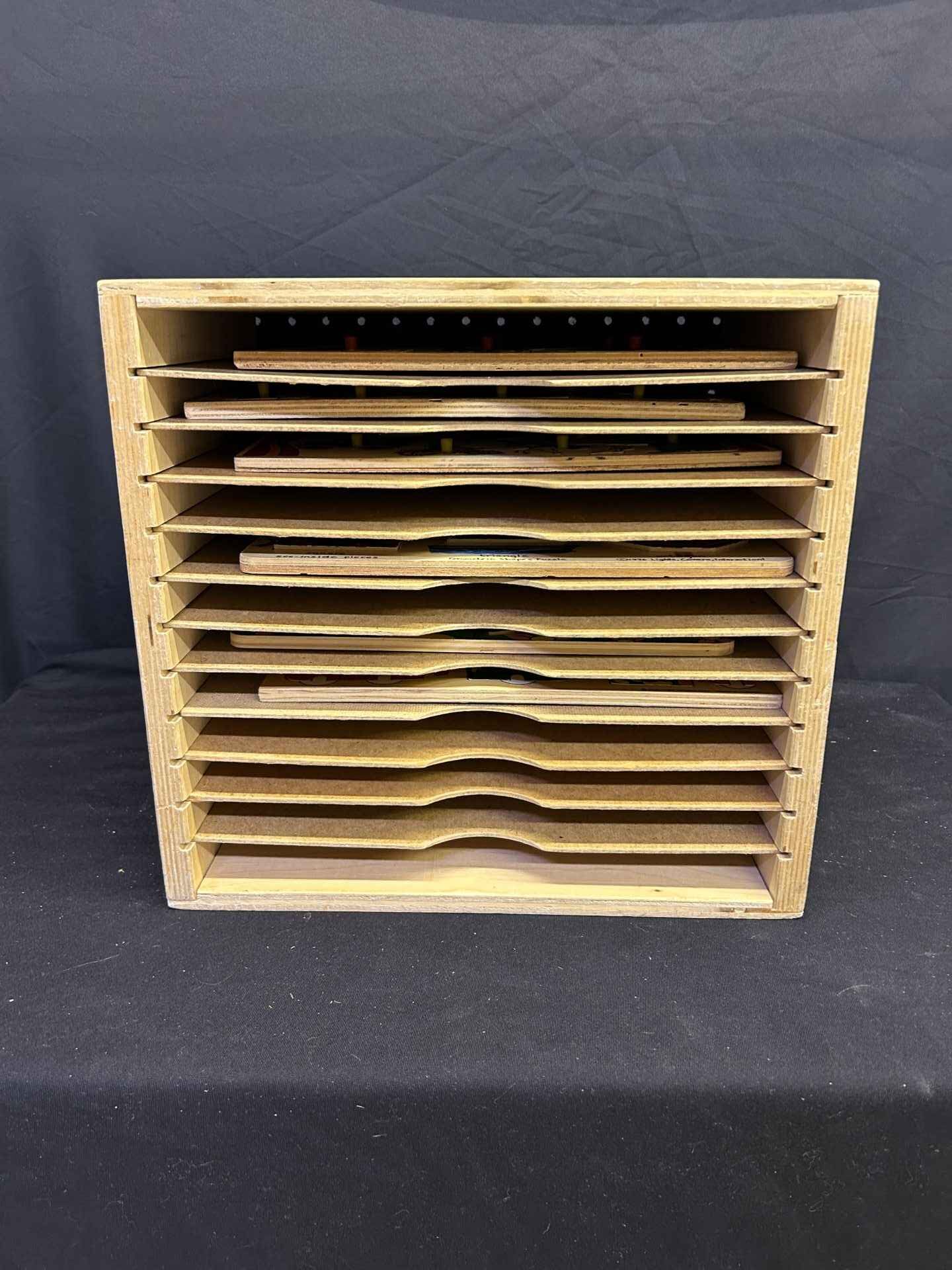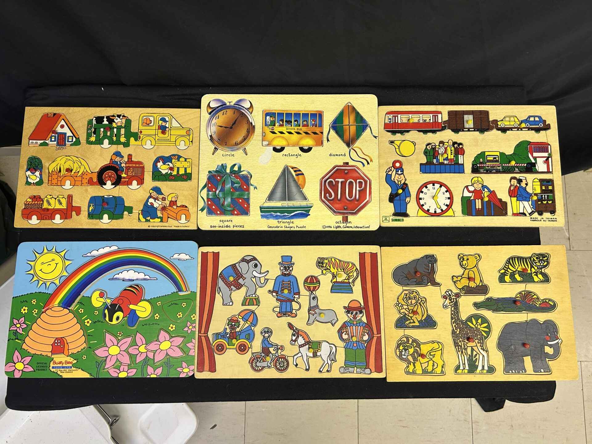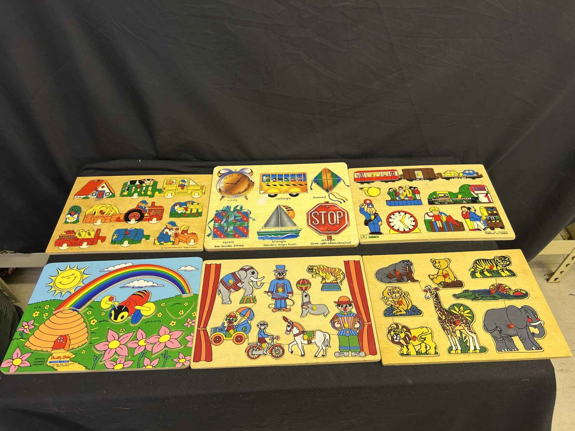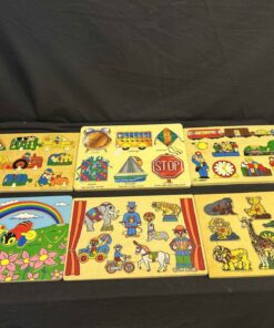 6 children’s wooden puzzles. All in good condition. Including wooden box to hold them.