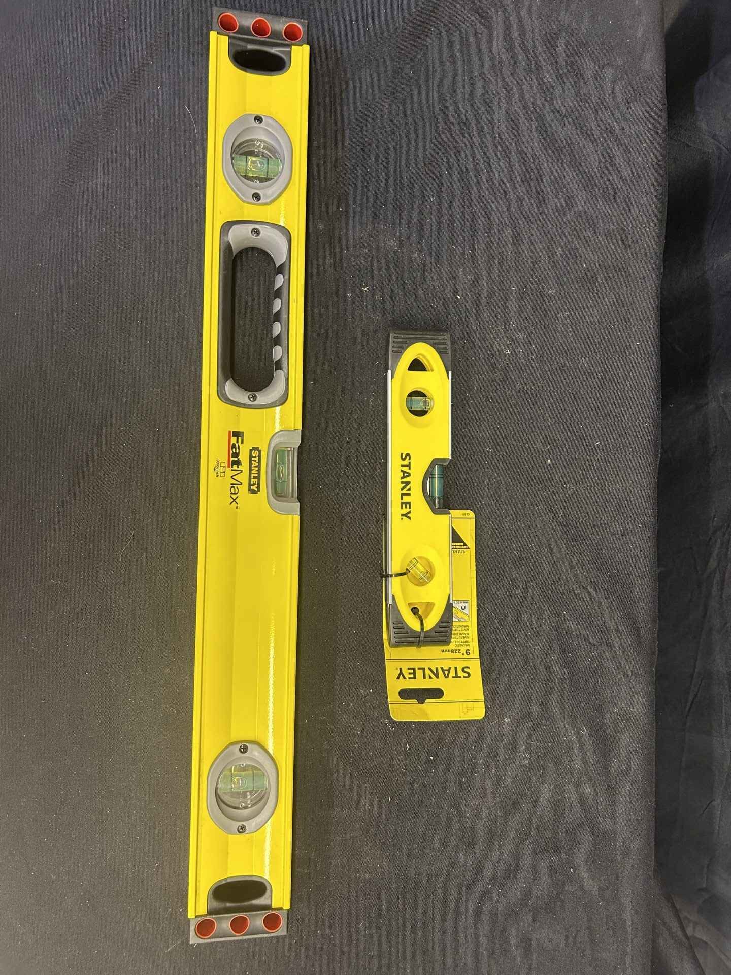 2 Stanley Levels. One 9″ magnetic torpedo level. One 24″ FatMax. Both brand new.