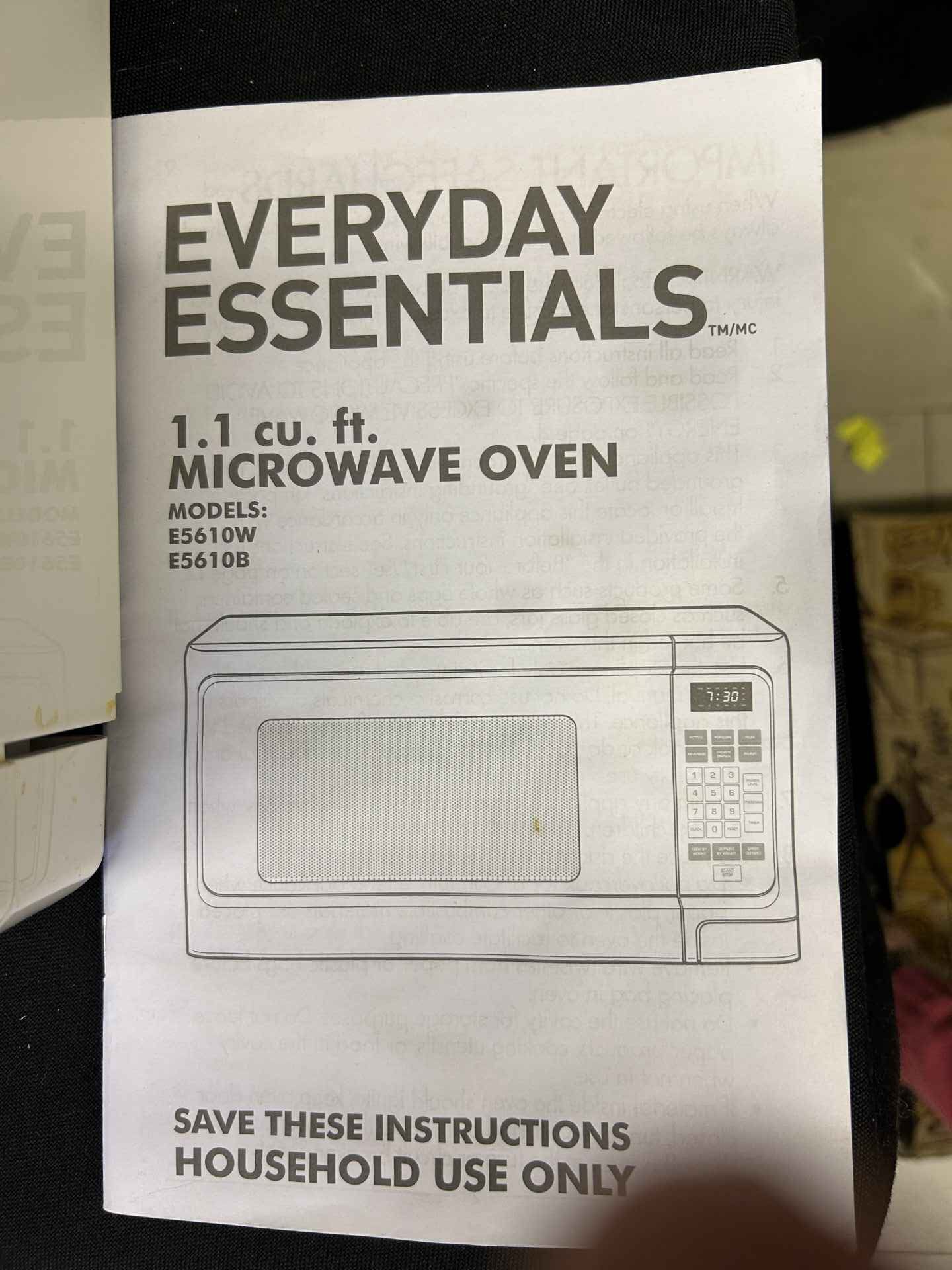 Microwave Everyday Essentials. 1.1 cu ft. Brand new condition.