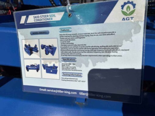 unused skid steer quick tach mount soil conditioner 75in