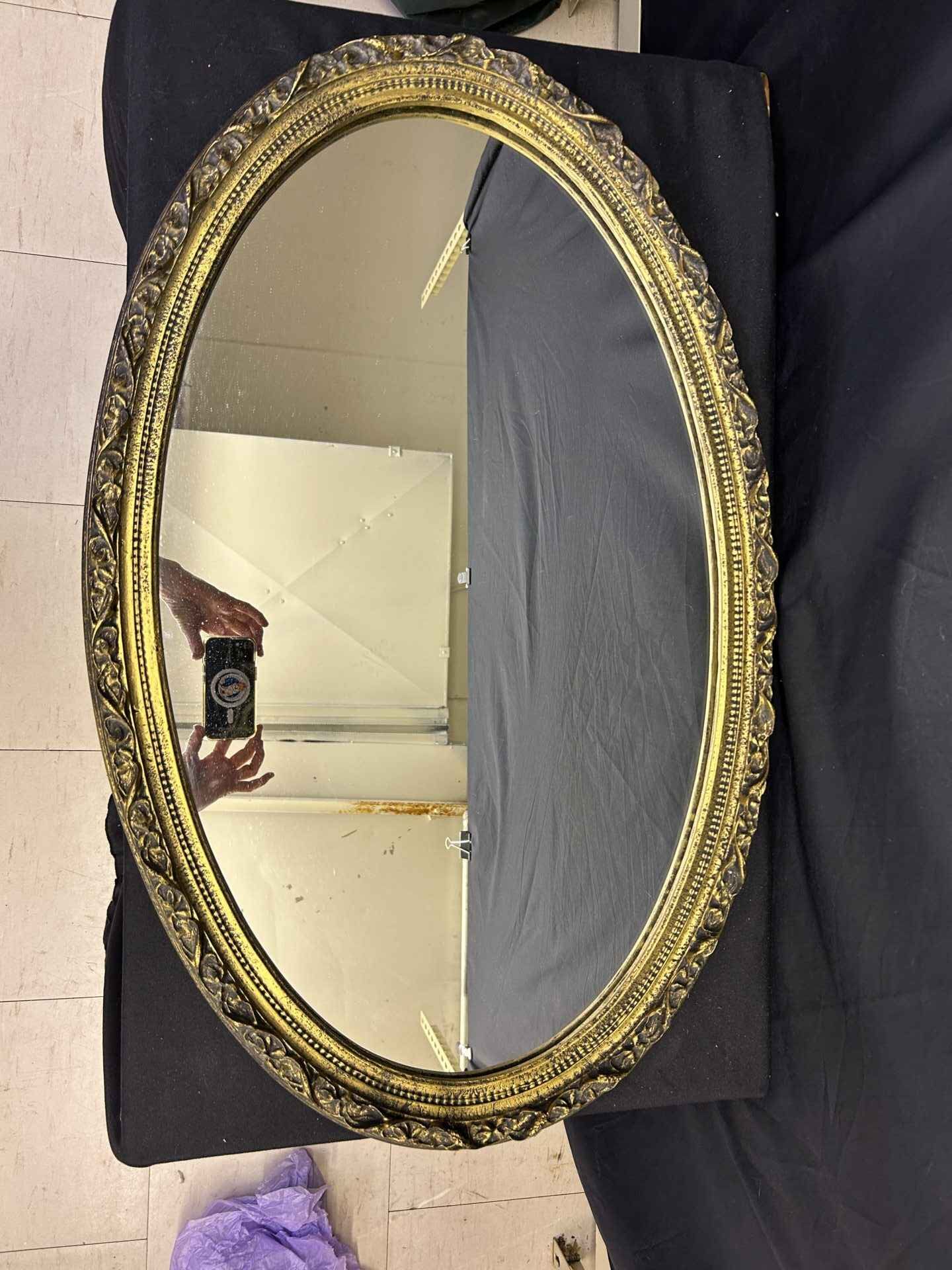 Vintage mirror, oval shape. 32.5″ x 21″.