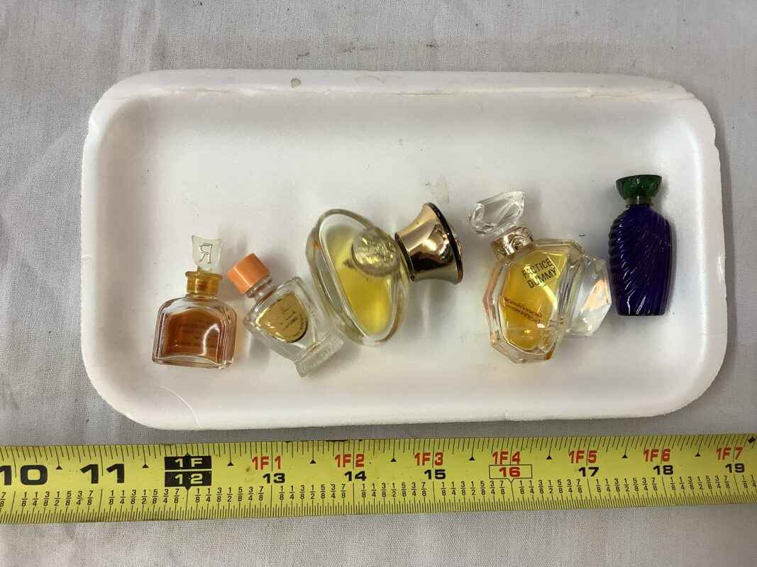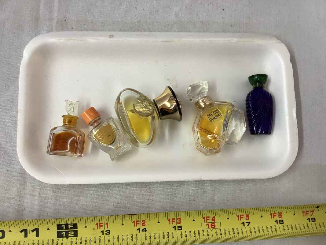 5 assorted perfume bottles some with perfume
