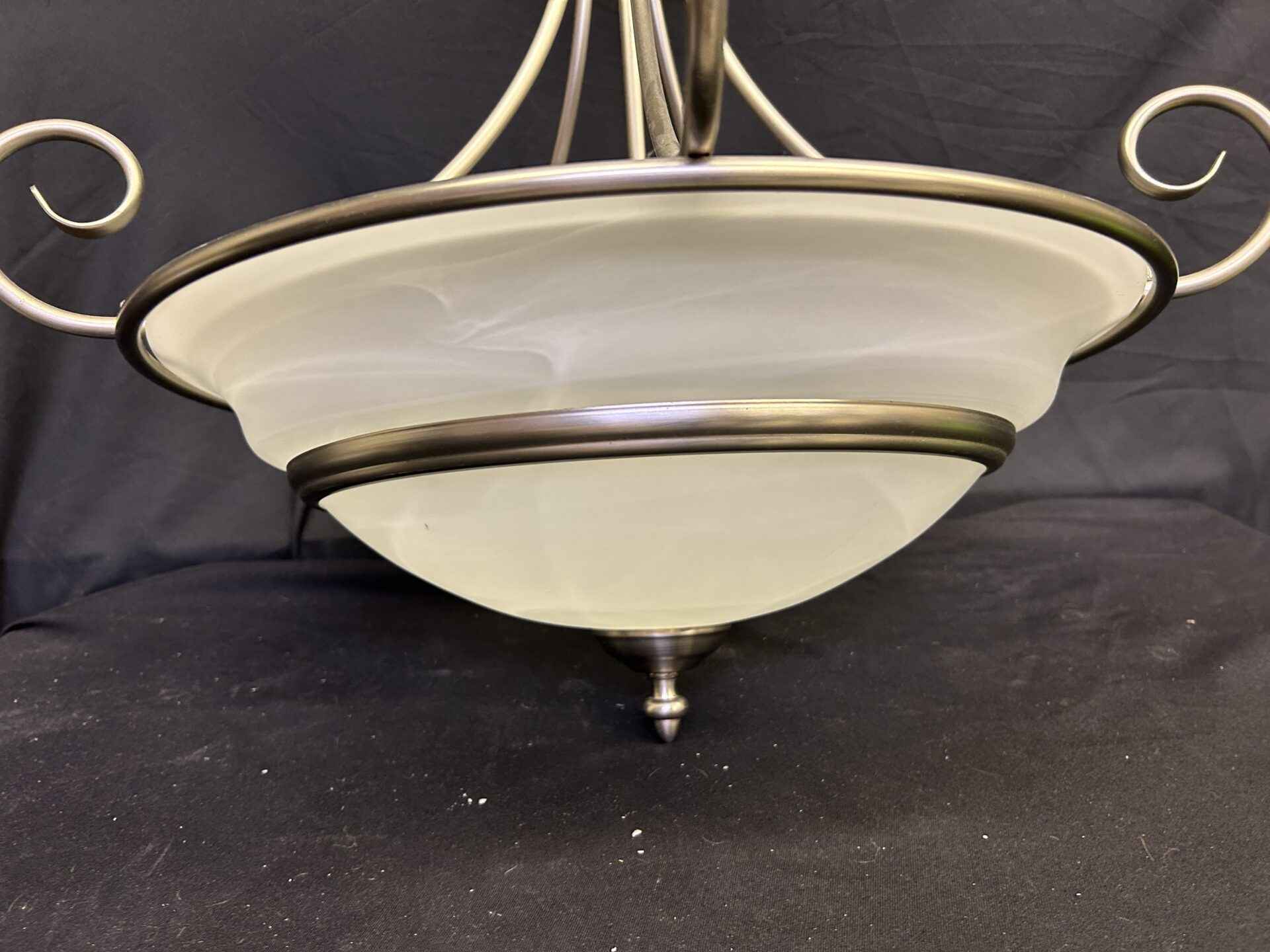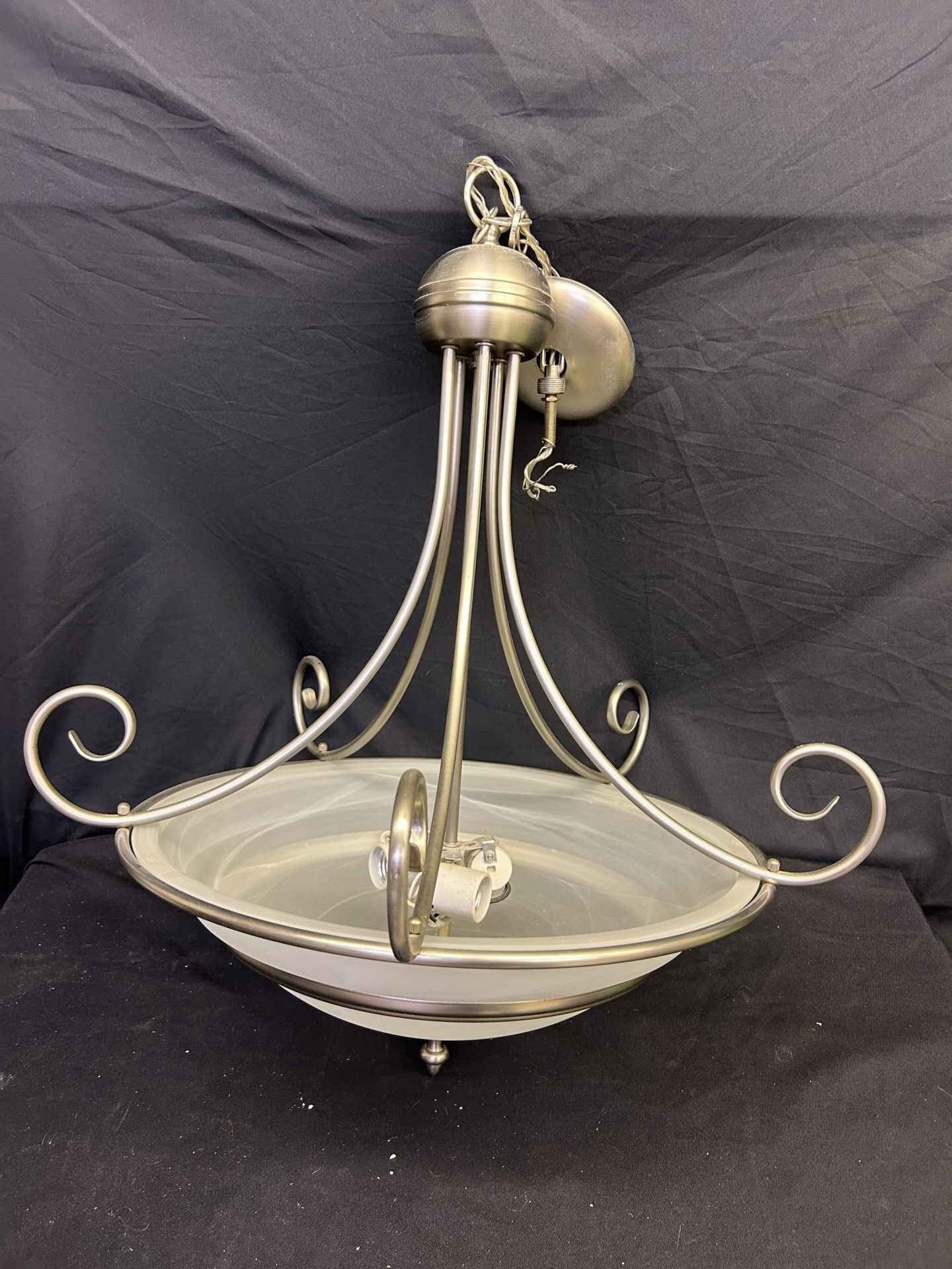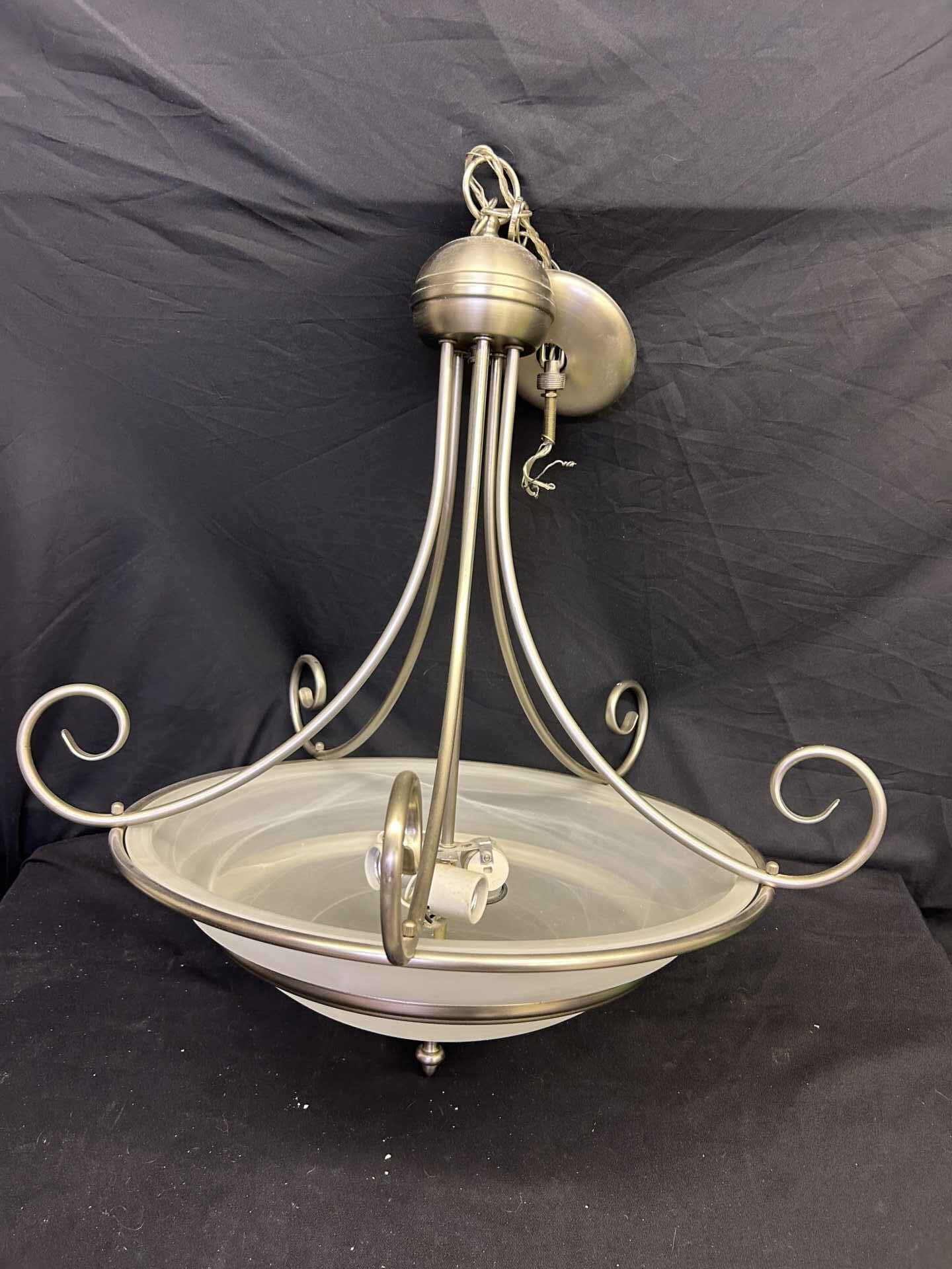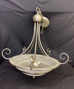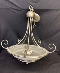 Brushed chrome ceiling light fixture. 25″ tall x 18.5″ dia.